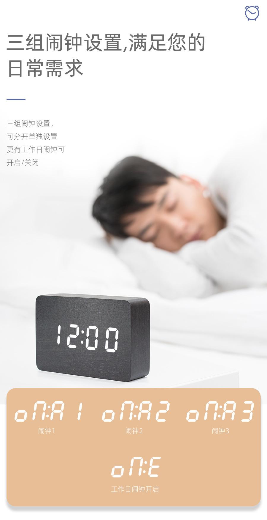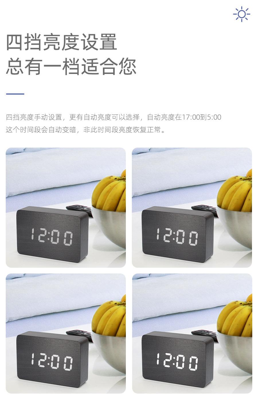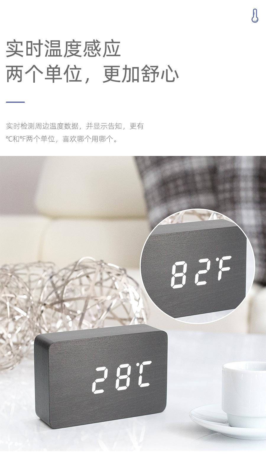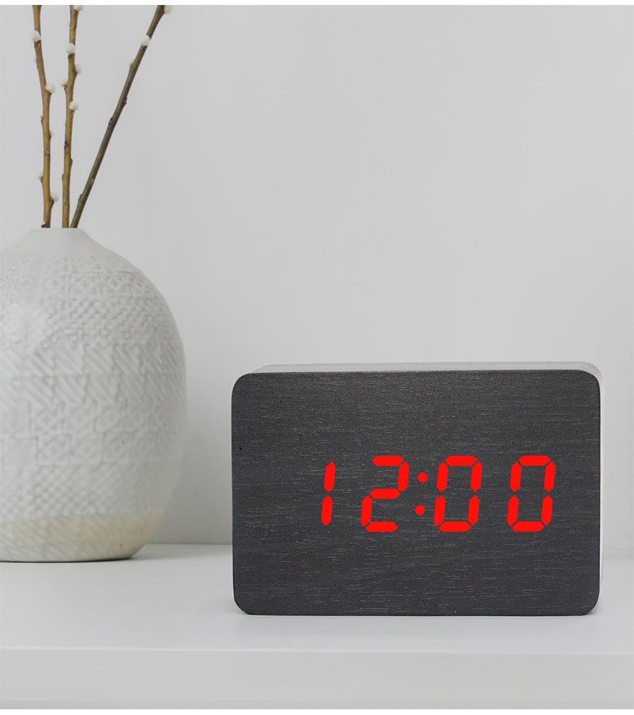 --Display digital LED, depois de ligar o interruptor, a luz LED suave será exibida na superfície lisa de madeira,Você pode ver a hora claramente mesmo à noite