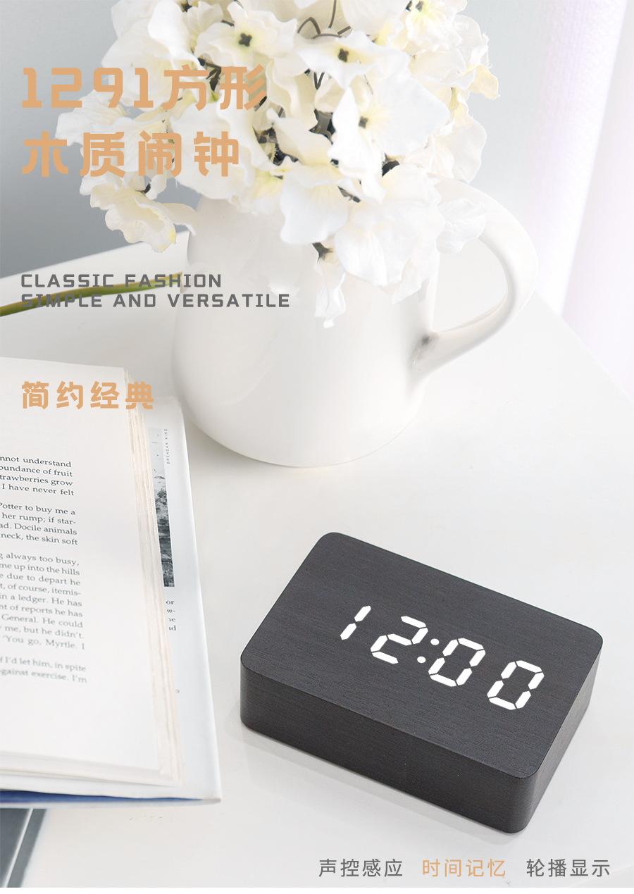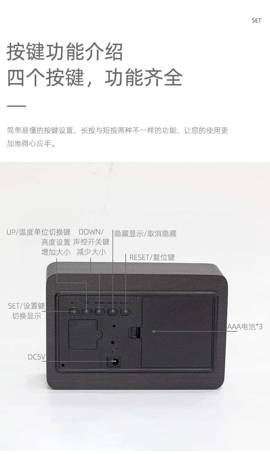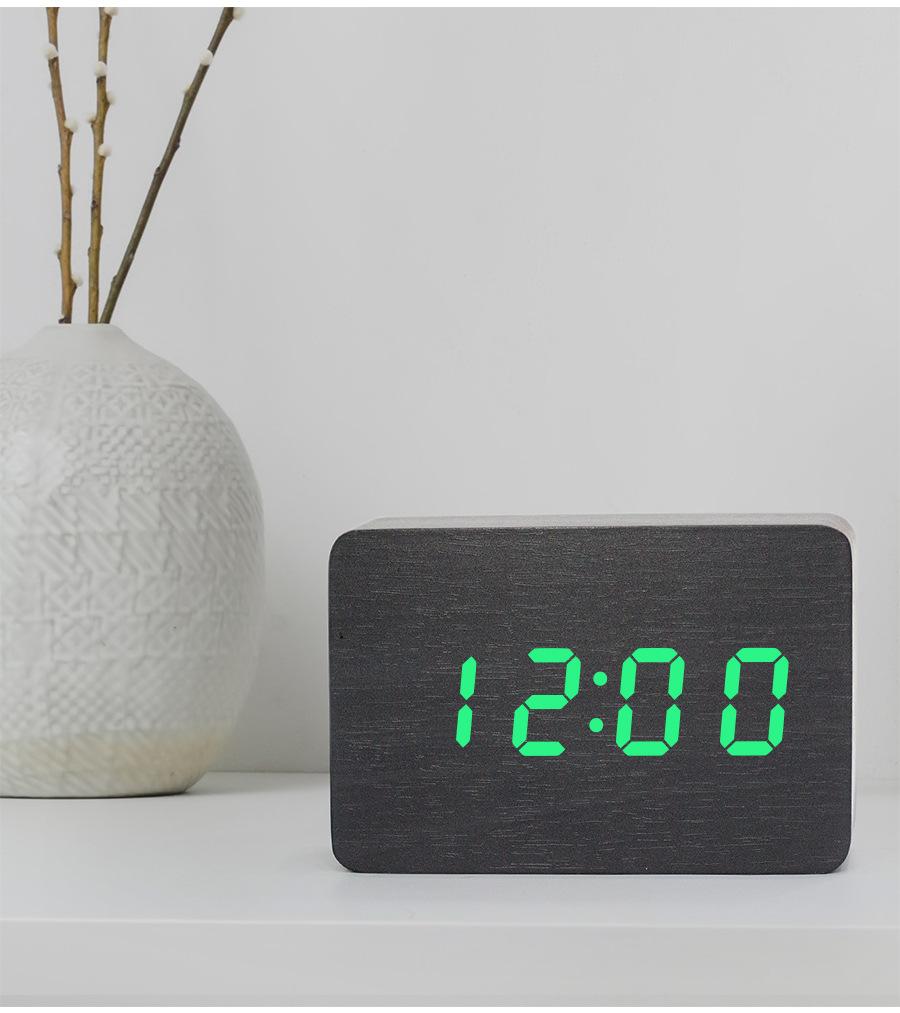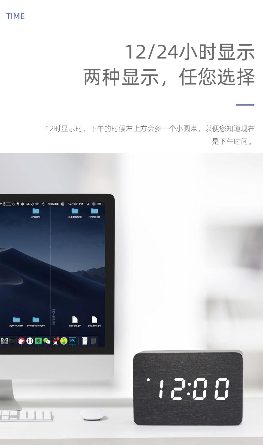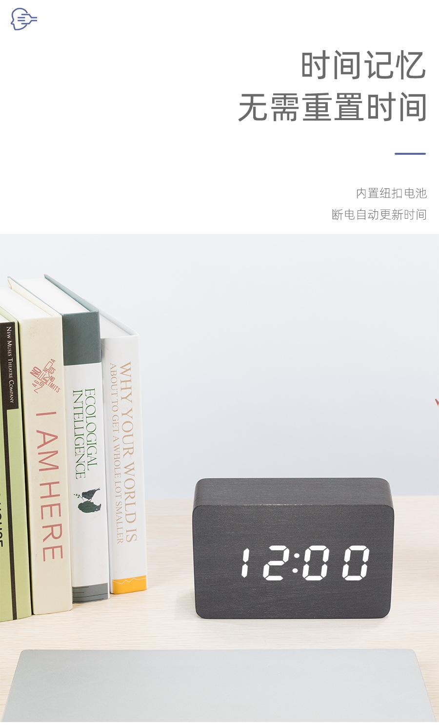 --Display digital LED, depois de ligar o interruptor, a luz LED suave será exibida na superfície lisa de madeira,Você pode ver a hora claramente mesmo à noite