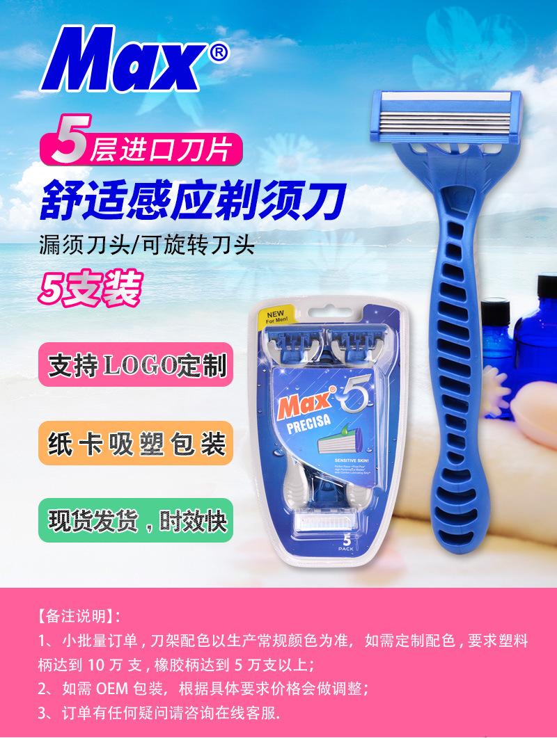 | Material do cabo: TPR+PP | Material da lâmina: aço inoxidável importado | Ingredientes da tira lubrificante: enriquecido com vitamina E e Aloe Vera |