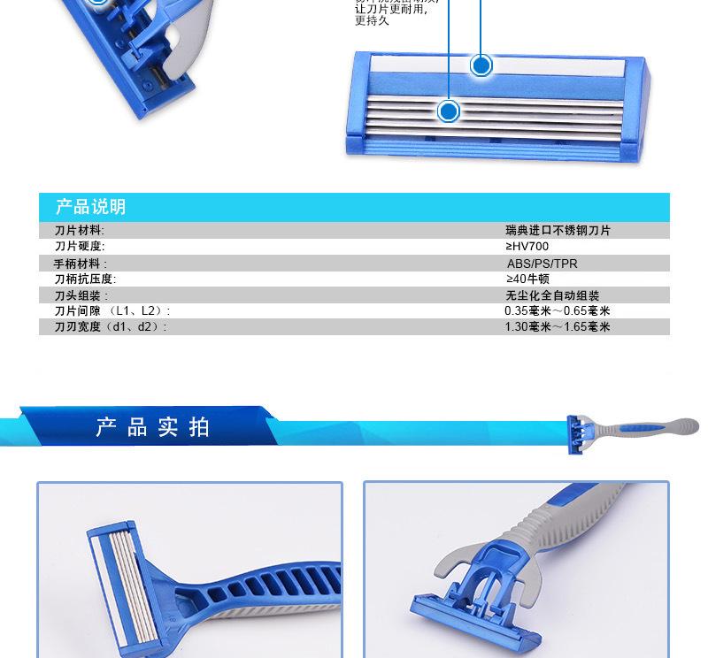 | Material do cabo: cabo de borracha | Material da lâmina: aço inoxidável importado | Ingredientes da tira lubrificante: enriquecido com vitamina E e Aloe Vera |