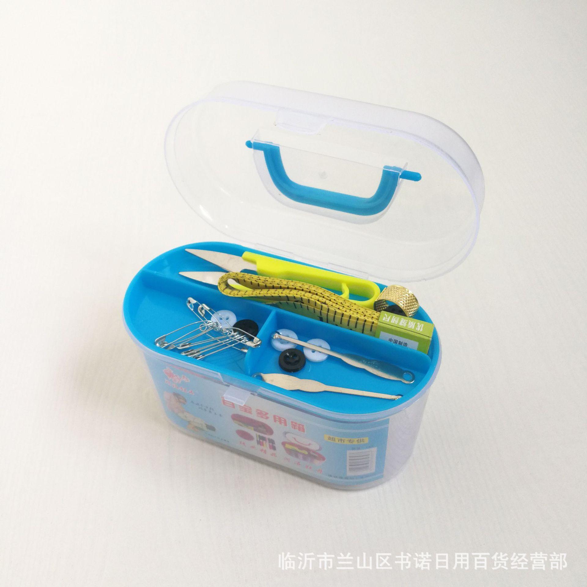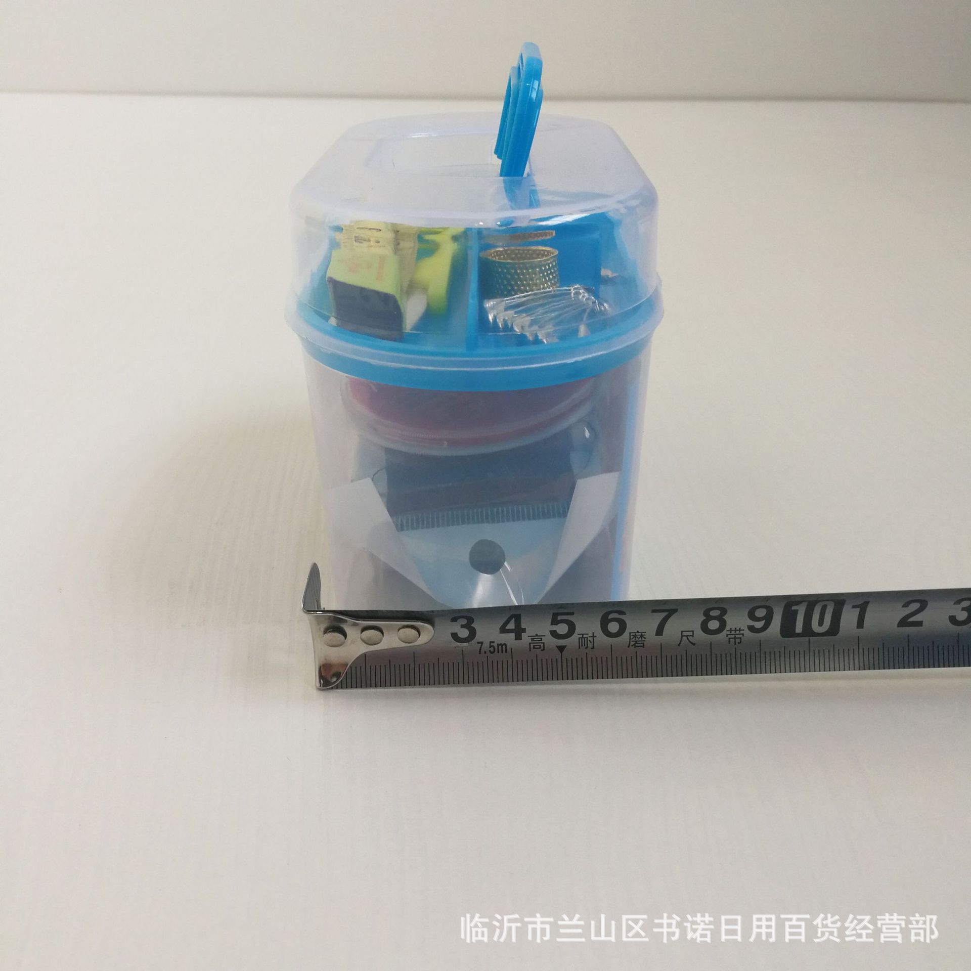 10 hilos de colores + 10 alfileres + 6 botones + 1 par de tijeras + 2 limpiadores de oídos + 1 caja de agujas + 1 cinta métrica + 1 dedal |