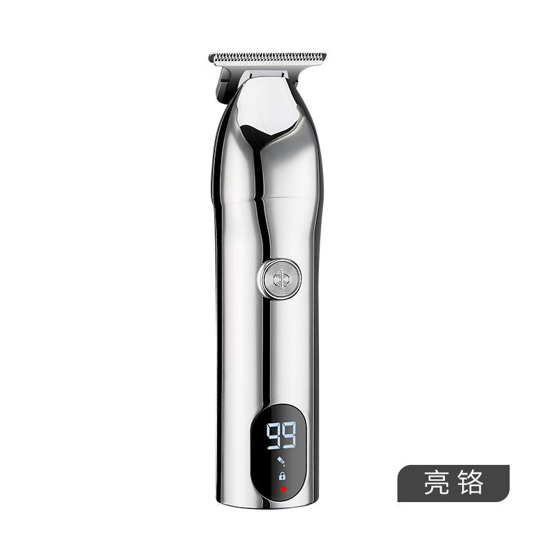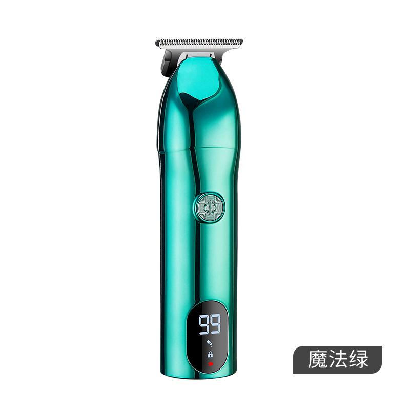 Puntos de venta del producto: Pantalla digital LCD, grabado de cabezal de aceite, batería de litio, cortadora de cabello de alta potencia, diseño de gancho inferior y cuchilla de acero fino.