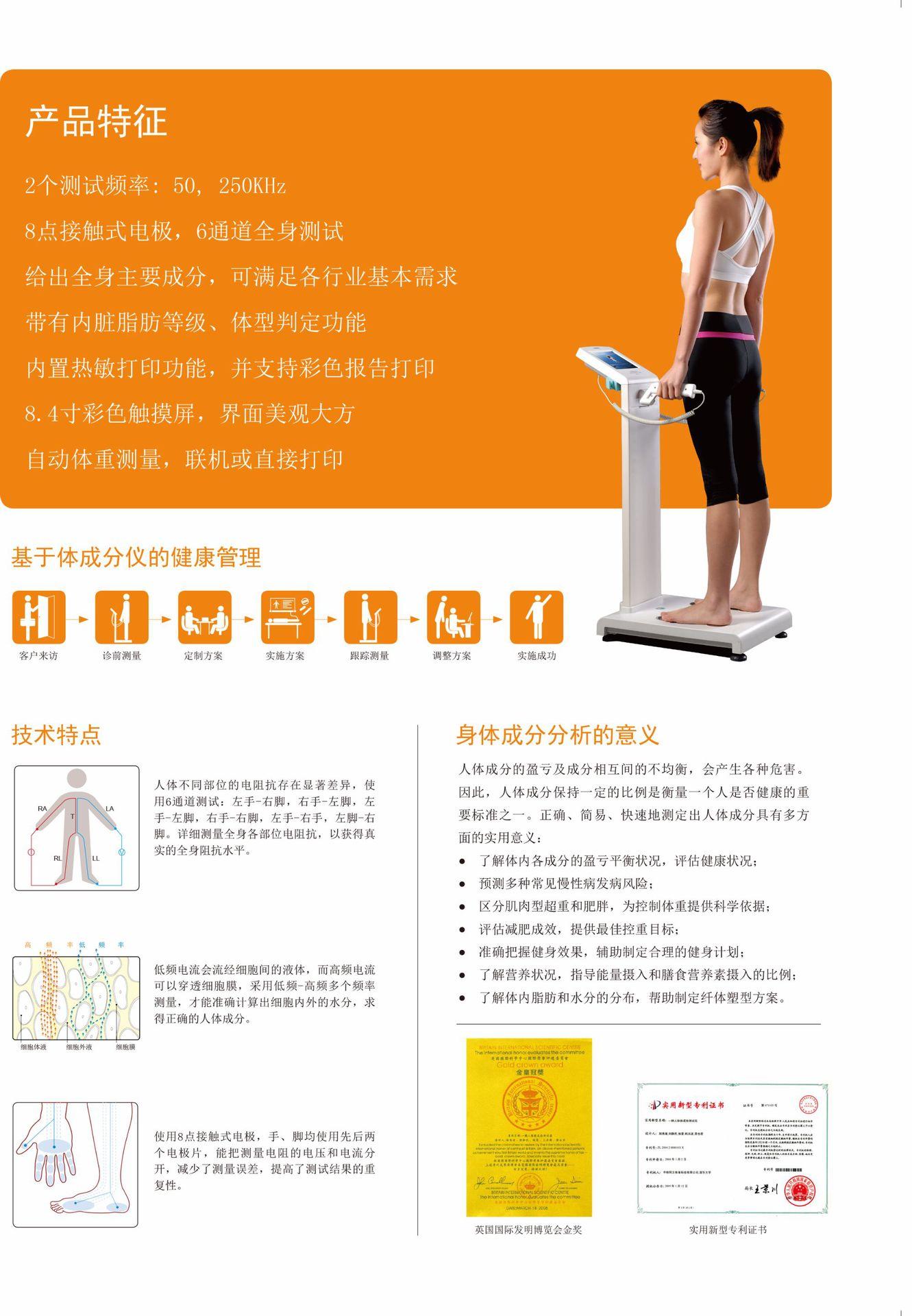 Método de medição: Método de medição de impedância bioelétrica multifrequência segmentada direta (DSM-BIA).