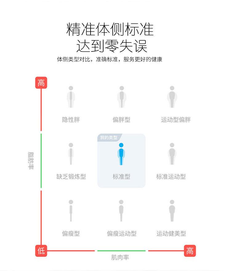 Peso corporal, peso corporal desengordurado (FFM), massa muscular, água total (A confirmar), proteína, osso, gordura,Porcentagem de gordura corporal(PBF)、Índice de Massa Corporal (IMC)IMC), nível de gordura visceral, porcentagem de água corporal (PBW), tipo de corpo, idade corporal, índice de saúde