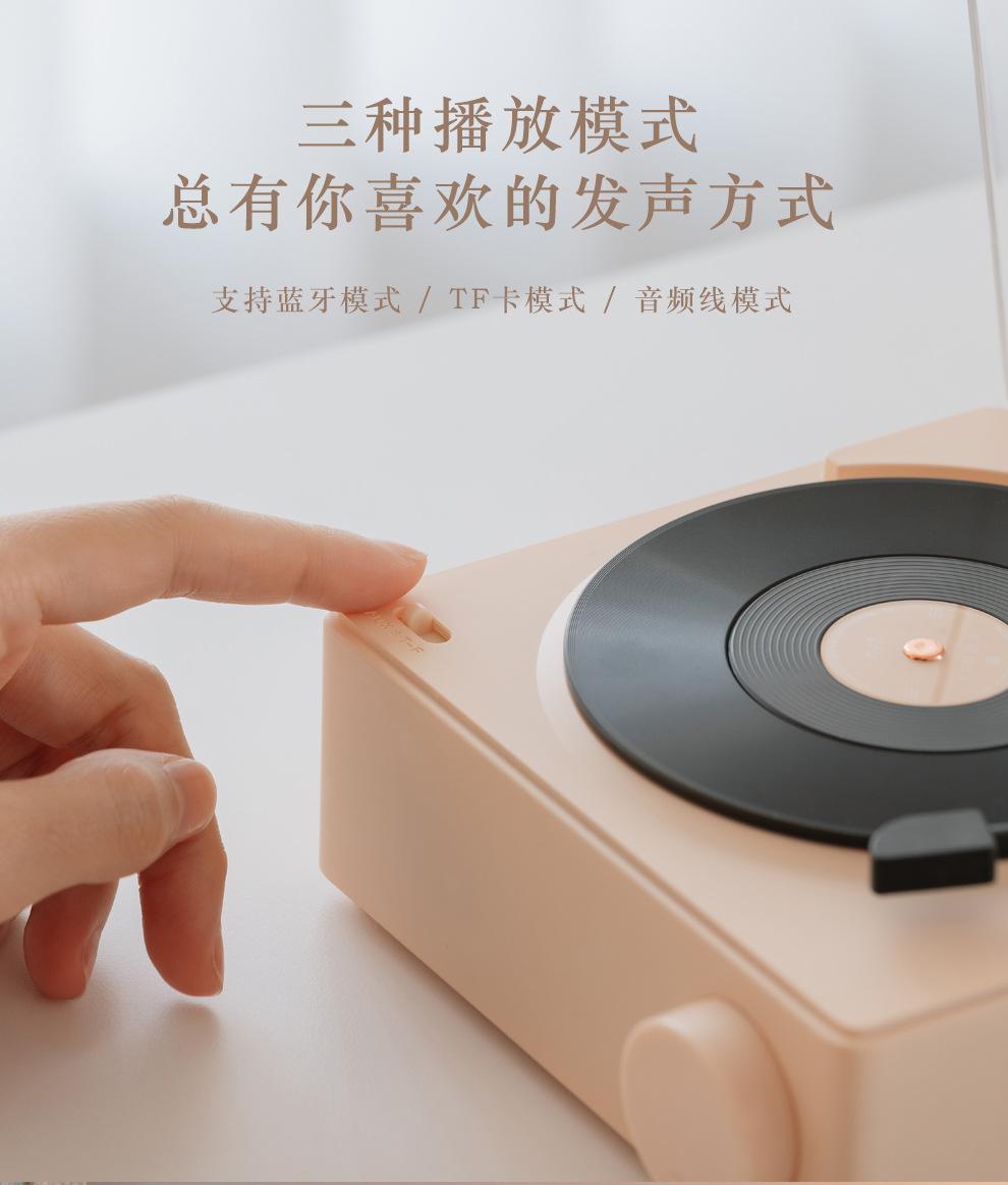 Alterne para alternar o Bluetooth, gire o botão para ajustar o volume, alterne a alavanca para ligar/desligar, pressione duas vezes para alternar as músicas, saída de áudio e cartão TF, pressione duas vezes para voltar uma música, ligue a máquina, gire o disco de vinil, pressione e segure para desligar o Bluetooth
