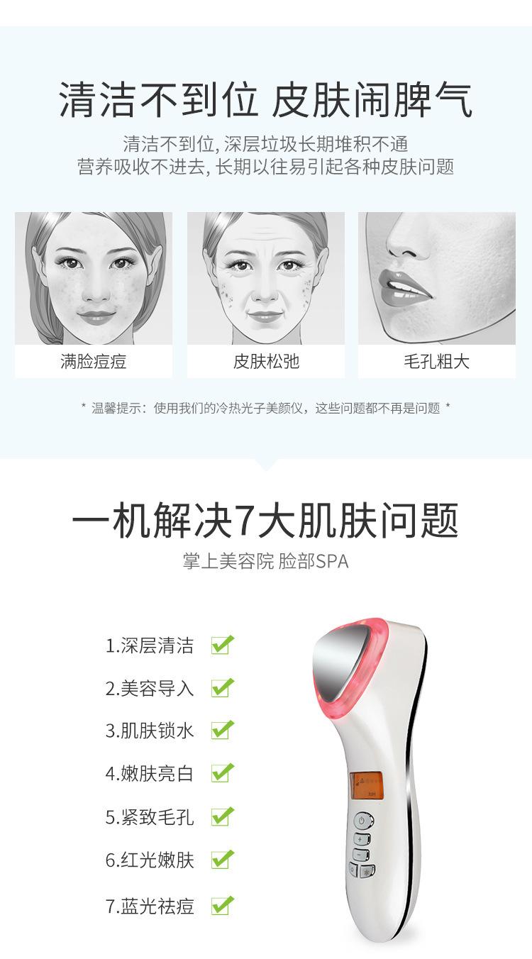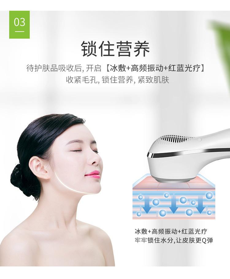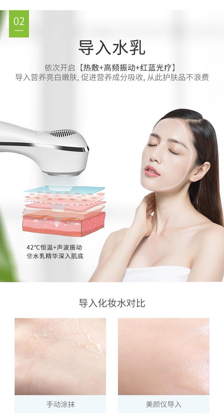1. Alternando quente e frio, o aquecimento suave ajuda a abrir os poros e suavizar o estrato córneo da pele; A função de resfriamento de comutação de 2 segundos pode encolher bem