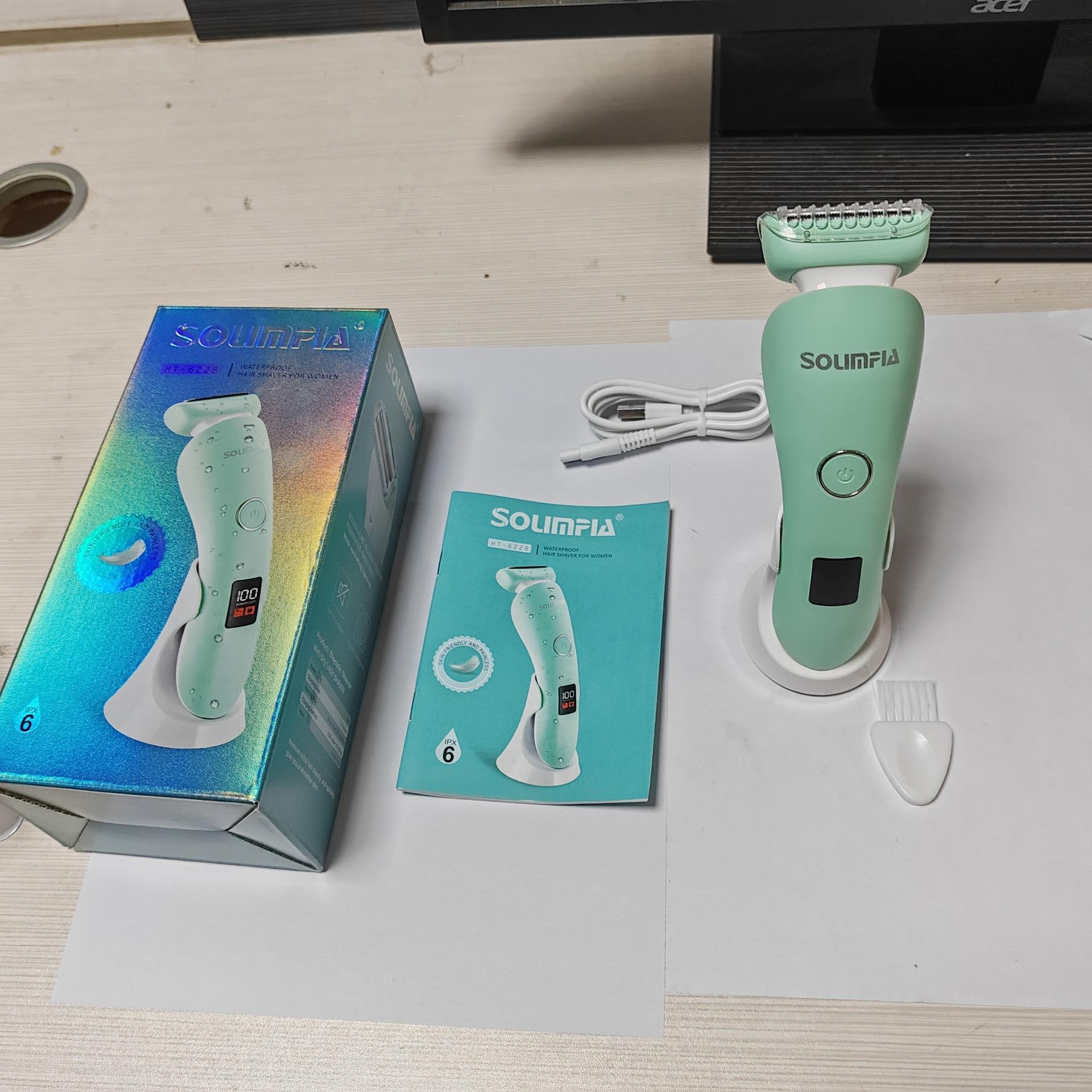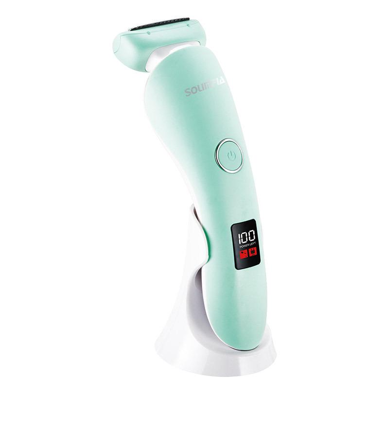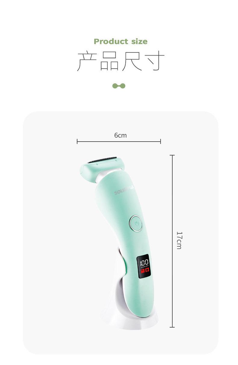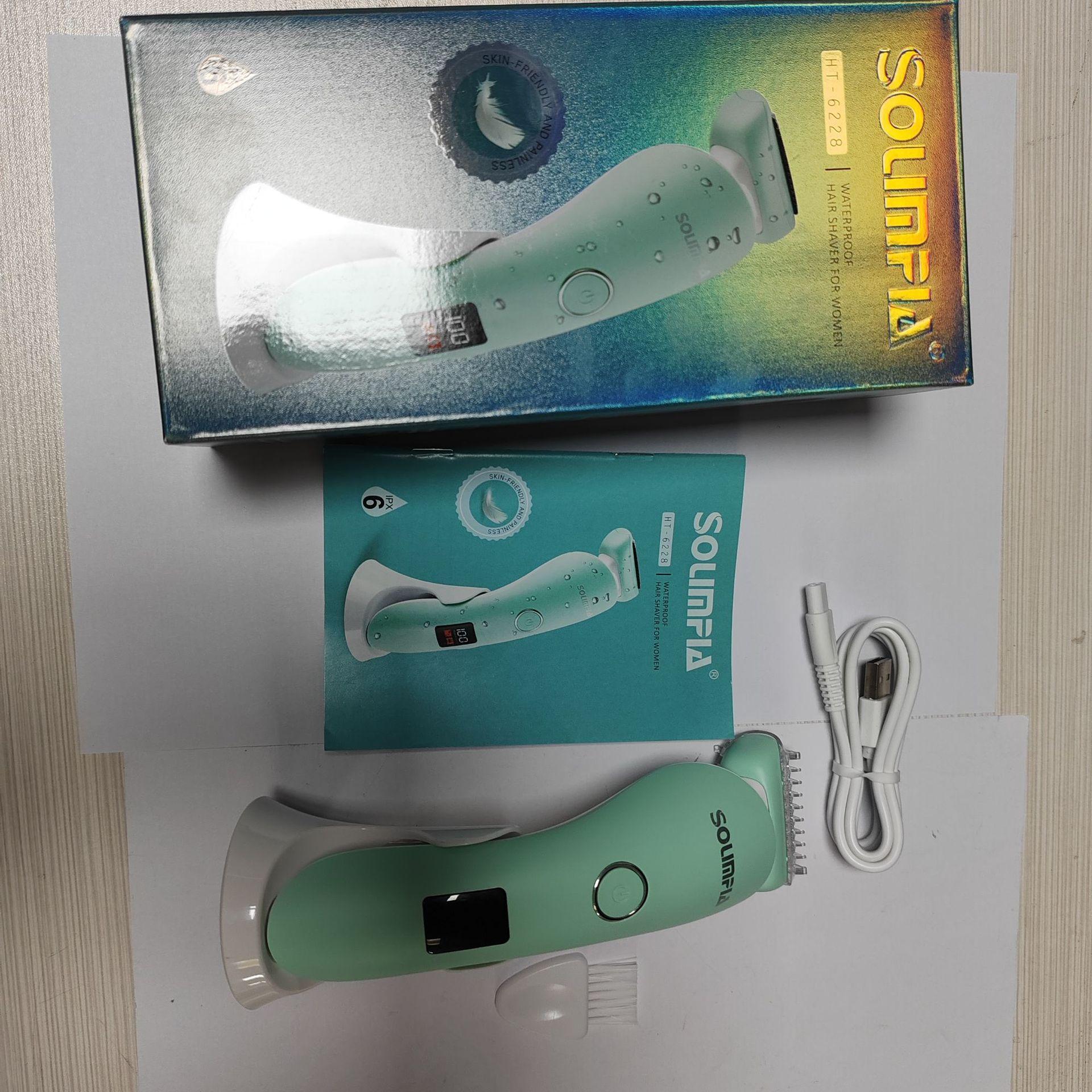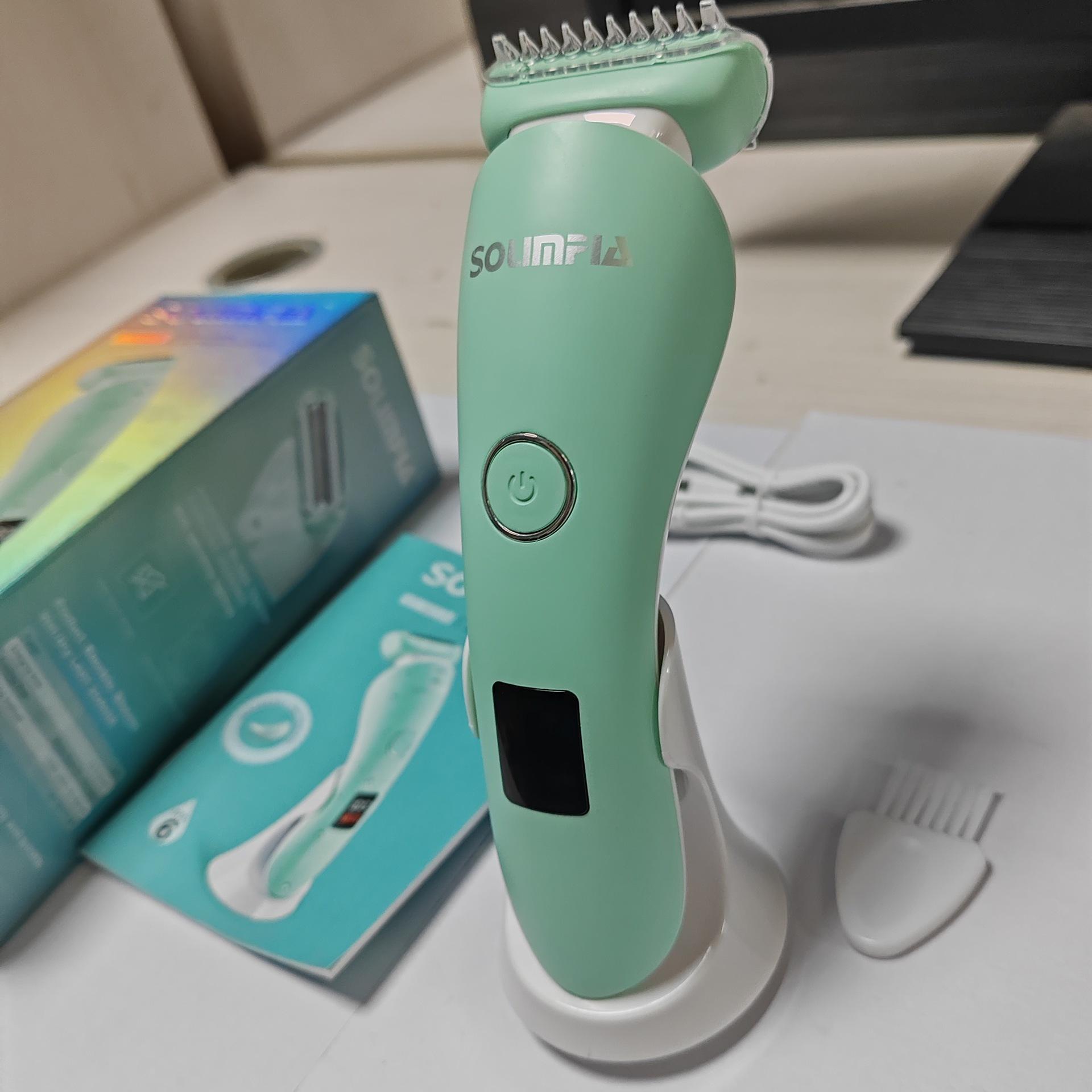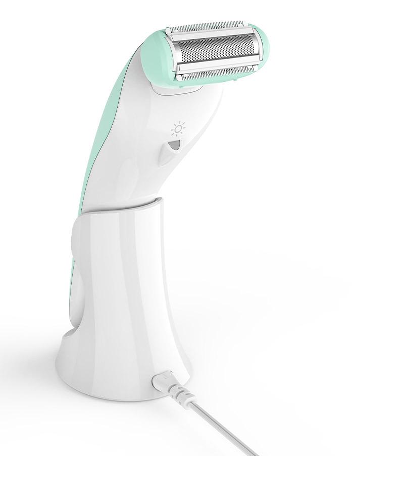 O conjunto completo inclui: barbeador + escova de limpeza + cabo USB + manual multilíngue + base de carregamento