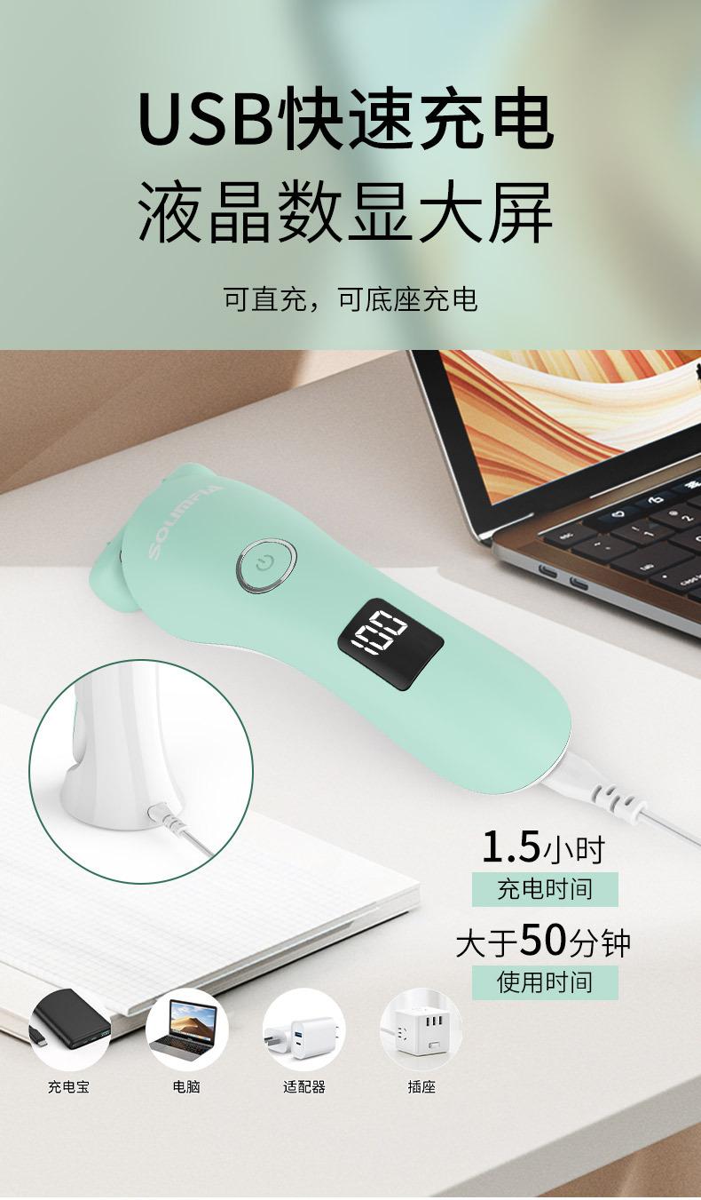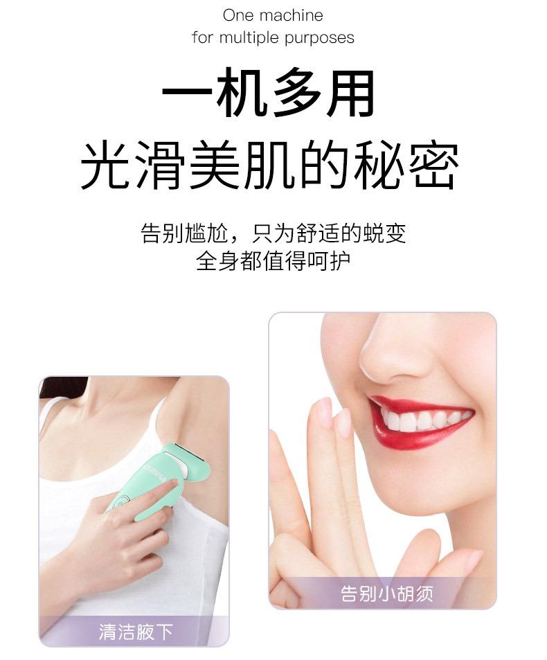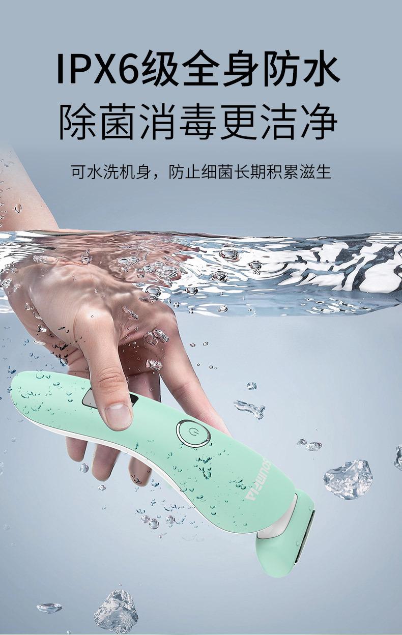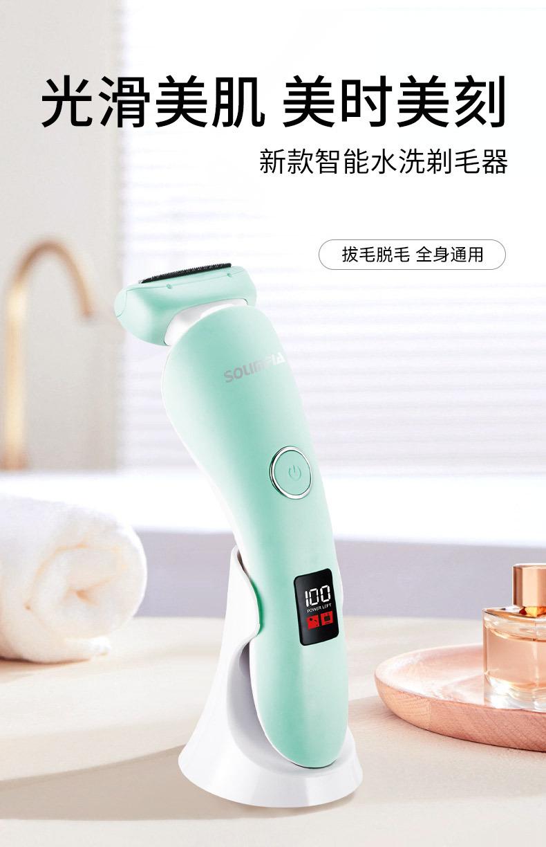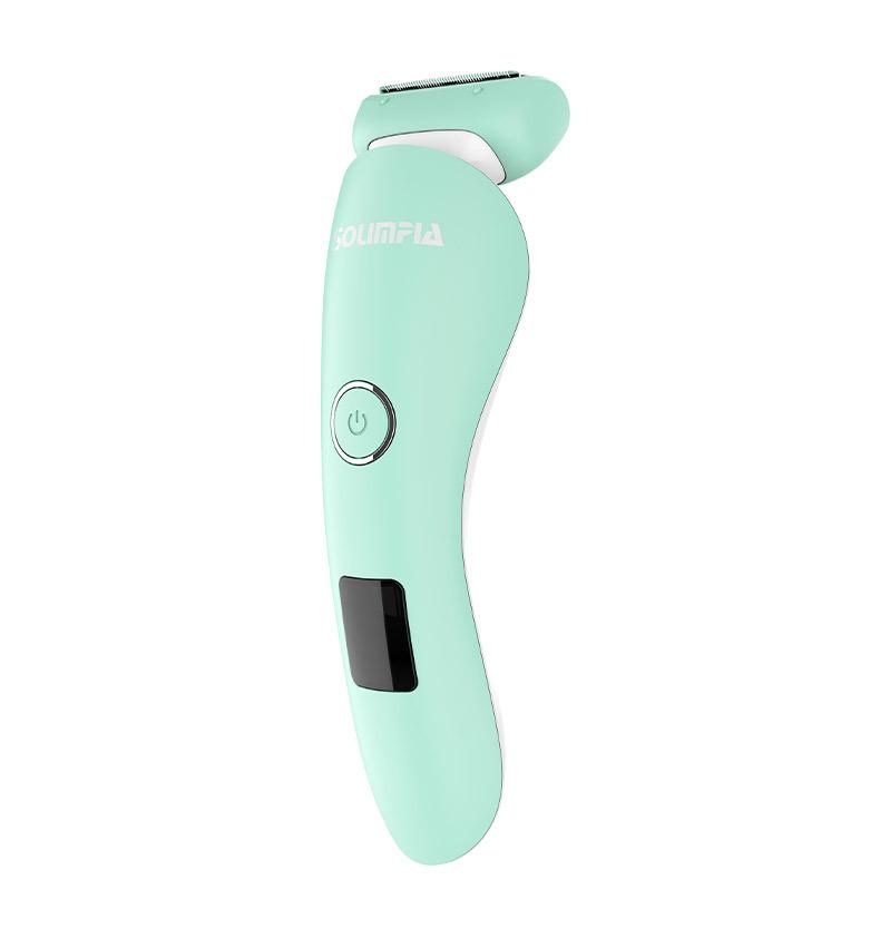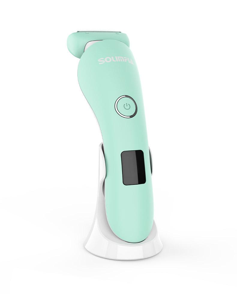 O conjunto completo inclui: barbeador + escova de limpeza + cabo USB + manual multilíngue + base de carregamento