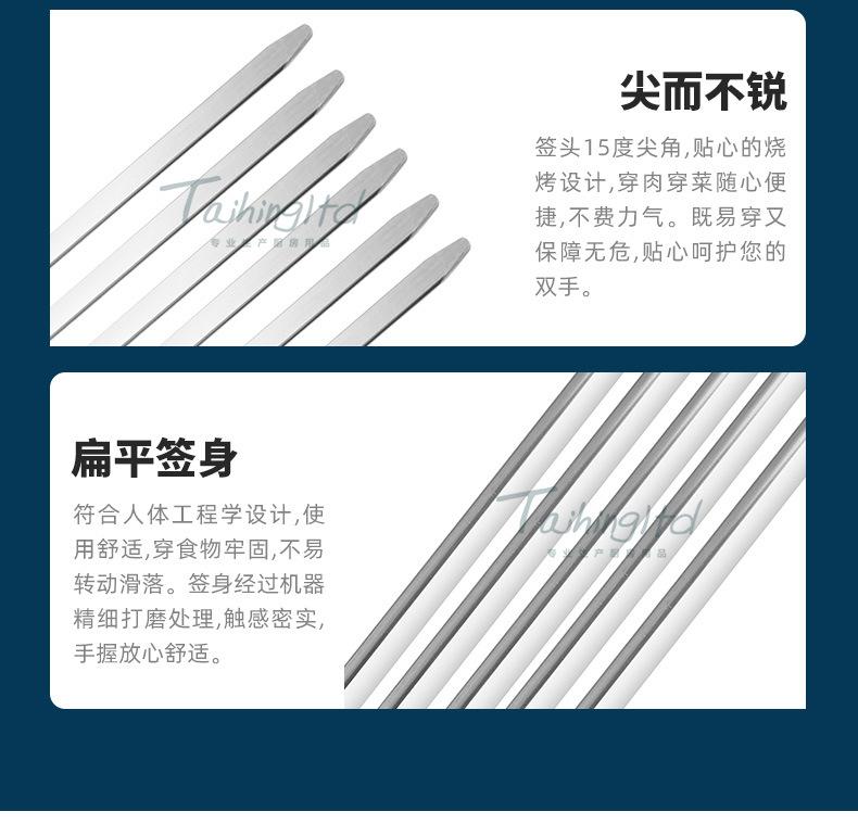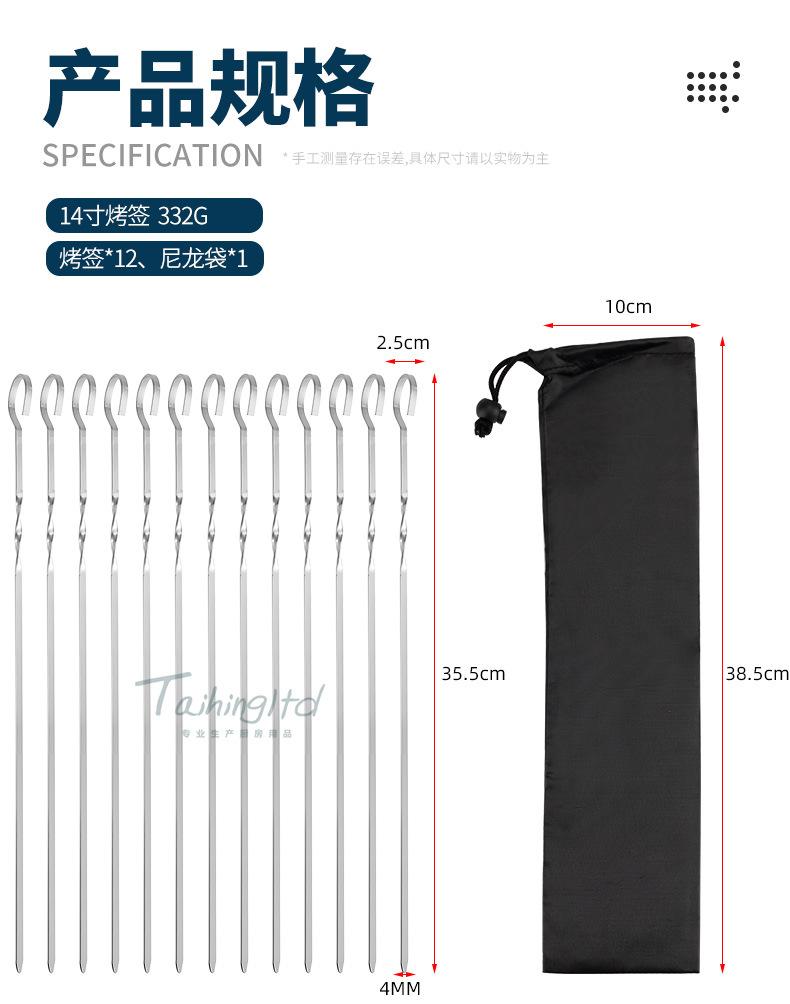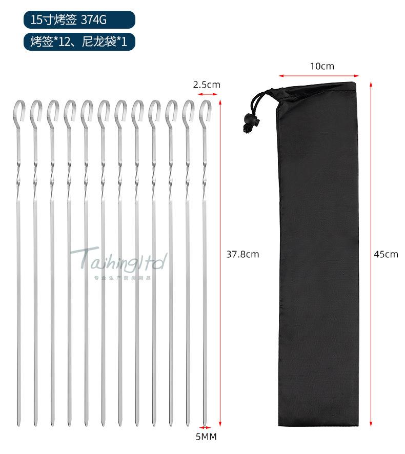 Embalagem: saco de nylon (Cada espeto possui uma capa protetora de plástico na cabeça)