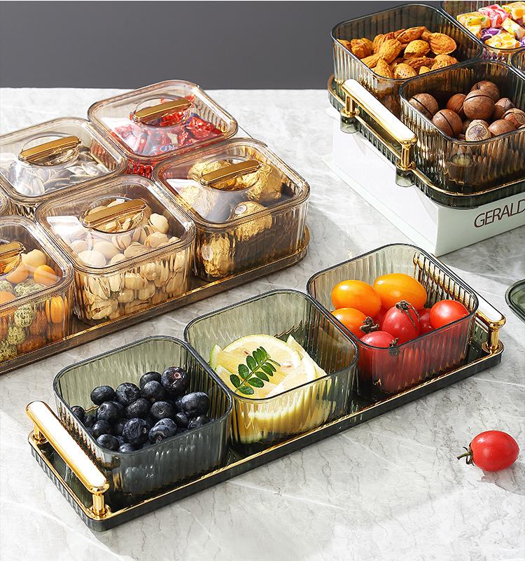 Nome do produto: Bandeja de frutas para petiscos PET - três grades/quatro grades/seis grades