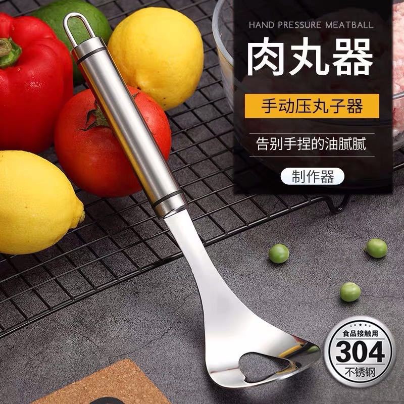 Vendas diretas da fábrica 304 aço inoxidável fabricante de almôndegas casa colher de bola de peixe camarão slide colher de carne |