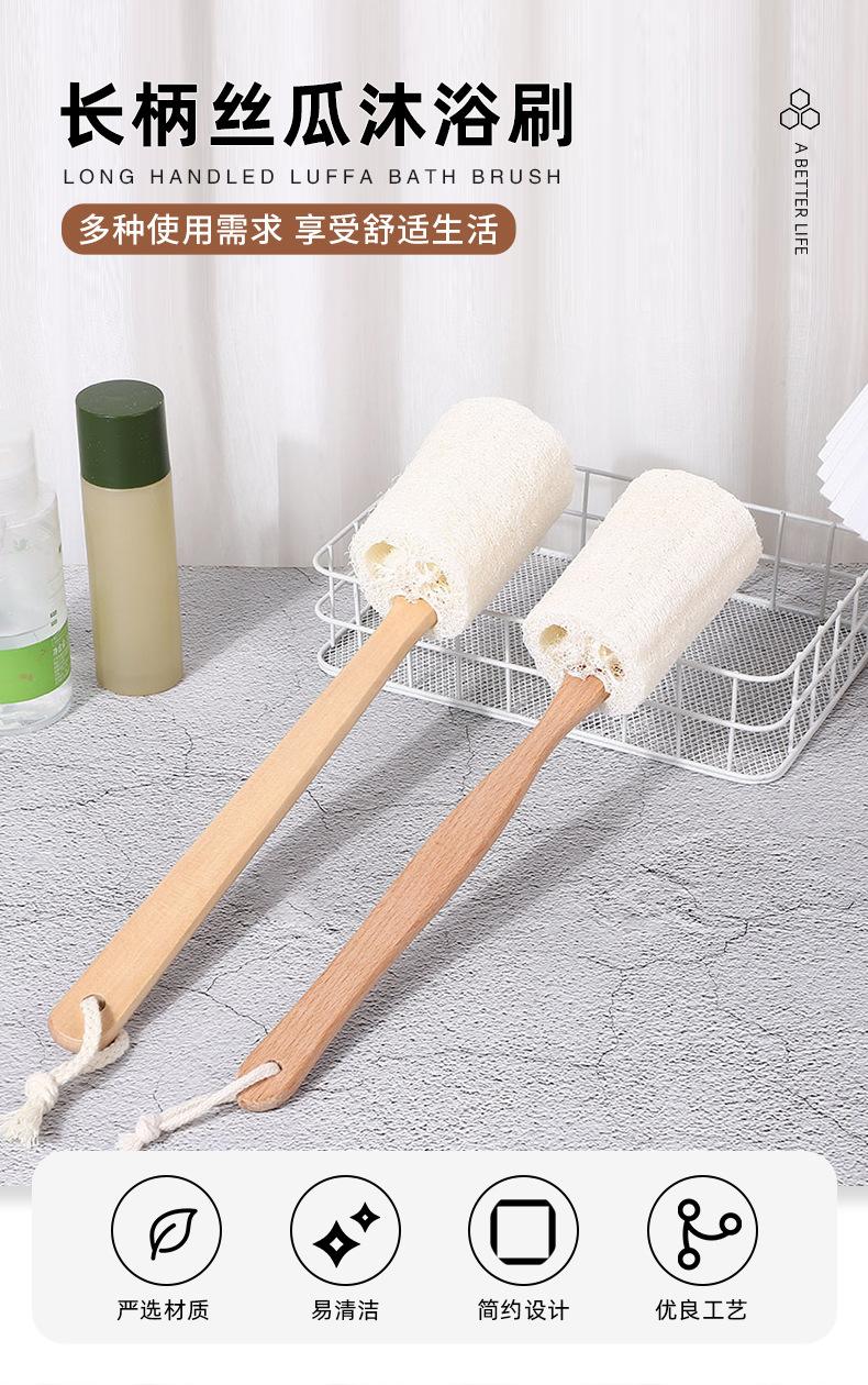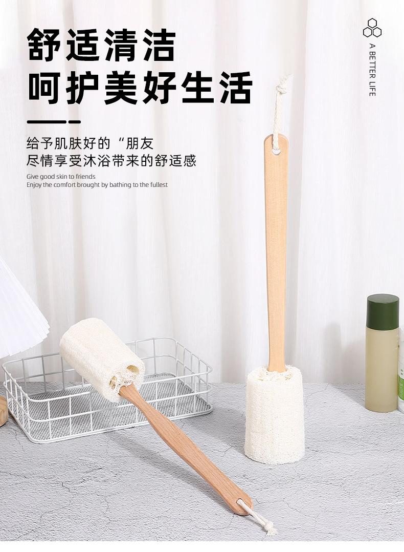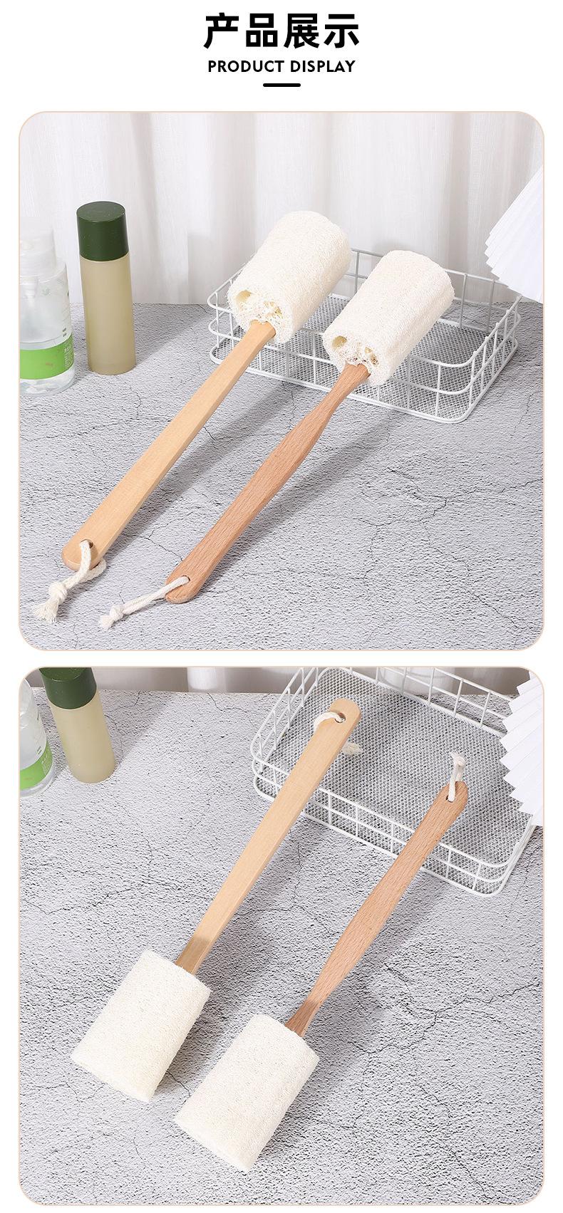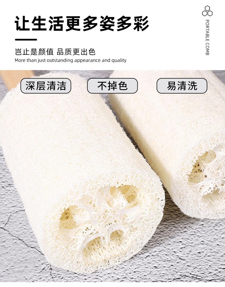 Descrição do produto: Bucha de escova de banho com cabo de madeira, 10 cm e 12,5 cm de comprimento, segmento de bucha natural, escova de banho, esfoliante de banho