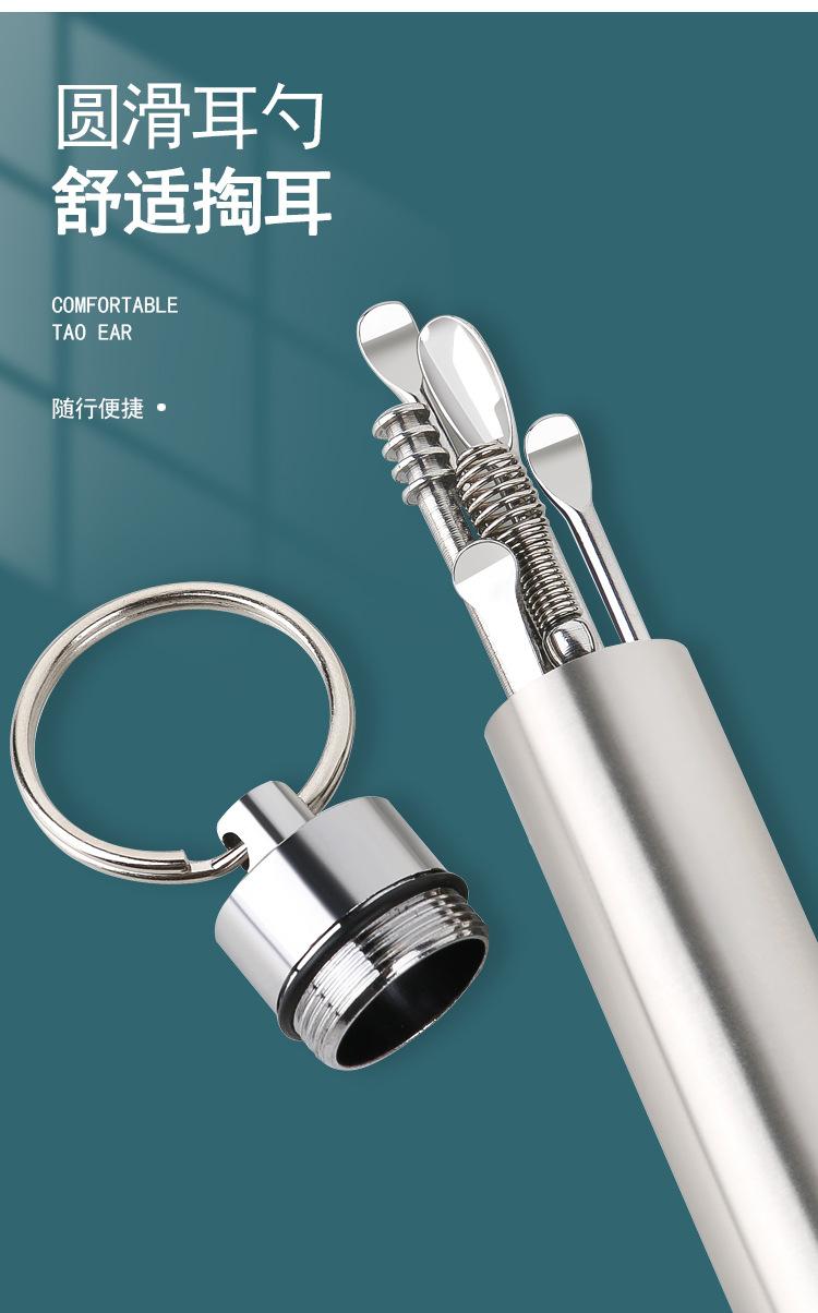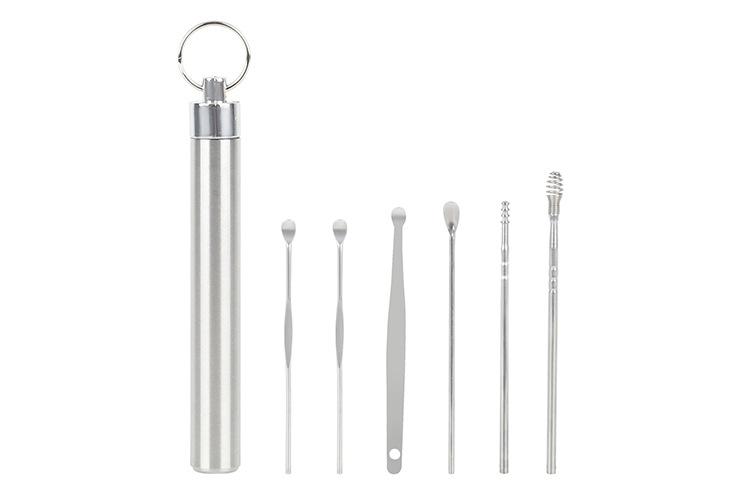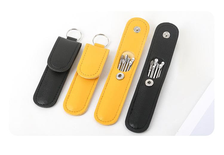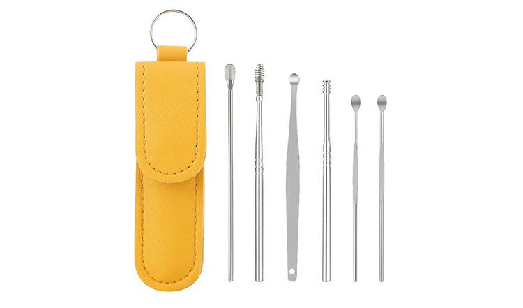Ferramenta de limpeza de ouvido doméstico fabricante adulto 7 peças palheta portátil chaveiro palheta espiral mola orelha palheta
