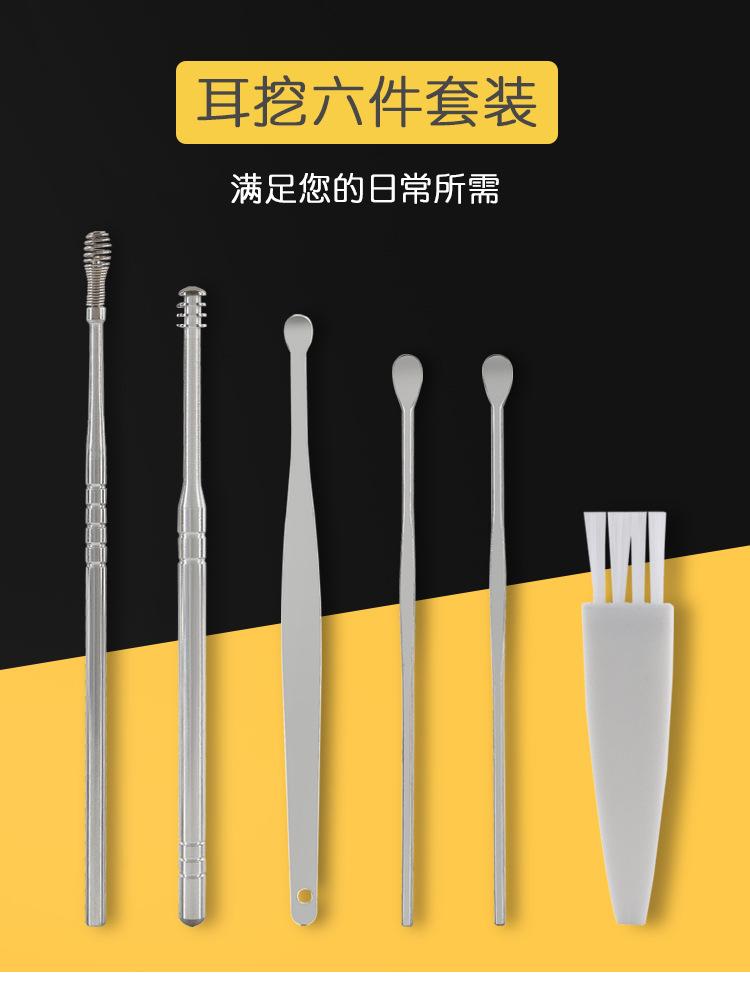 Conjunto de 6 peças de palheta de ouvido fabricantes atacado espiral mola conjunto de ferramentas de limpeza de ouvido portátil adulto palheta de ouvido