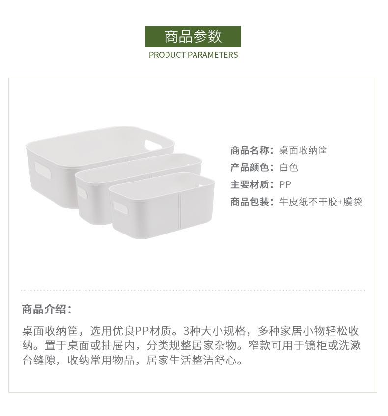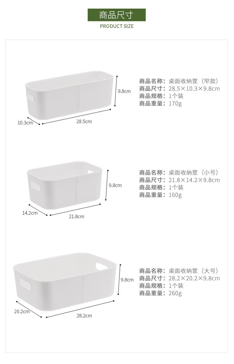 [Introdução]: Cesta de armazenamento de mesa - versão estreita, feita de material PP de alta qualidade, pode armazenar facilmente uma variedade de itens, adequada para salas de estar, quartos e outros ambientes, armazenar artigos diversos do dia a dia e deixar o ambiente da sua casa organizado.