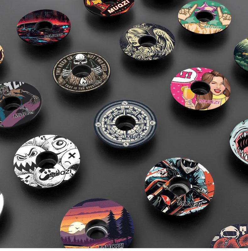 Características: Material leve de liga de alumínio, processo CNC, anodização, processo de relevo 3D, totem personalizado, cores brilhantes.