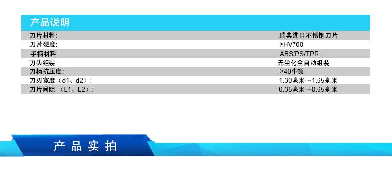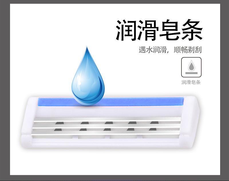 | Material do cabo: TPR+PP | Material da lâmina: aço inoxidável sueco | Ingredientes da tira lubrificante: rica em vitamina E e extrato de aloe vera |