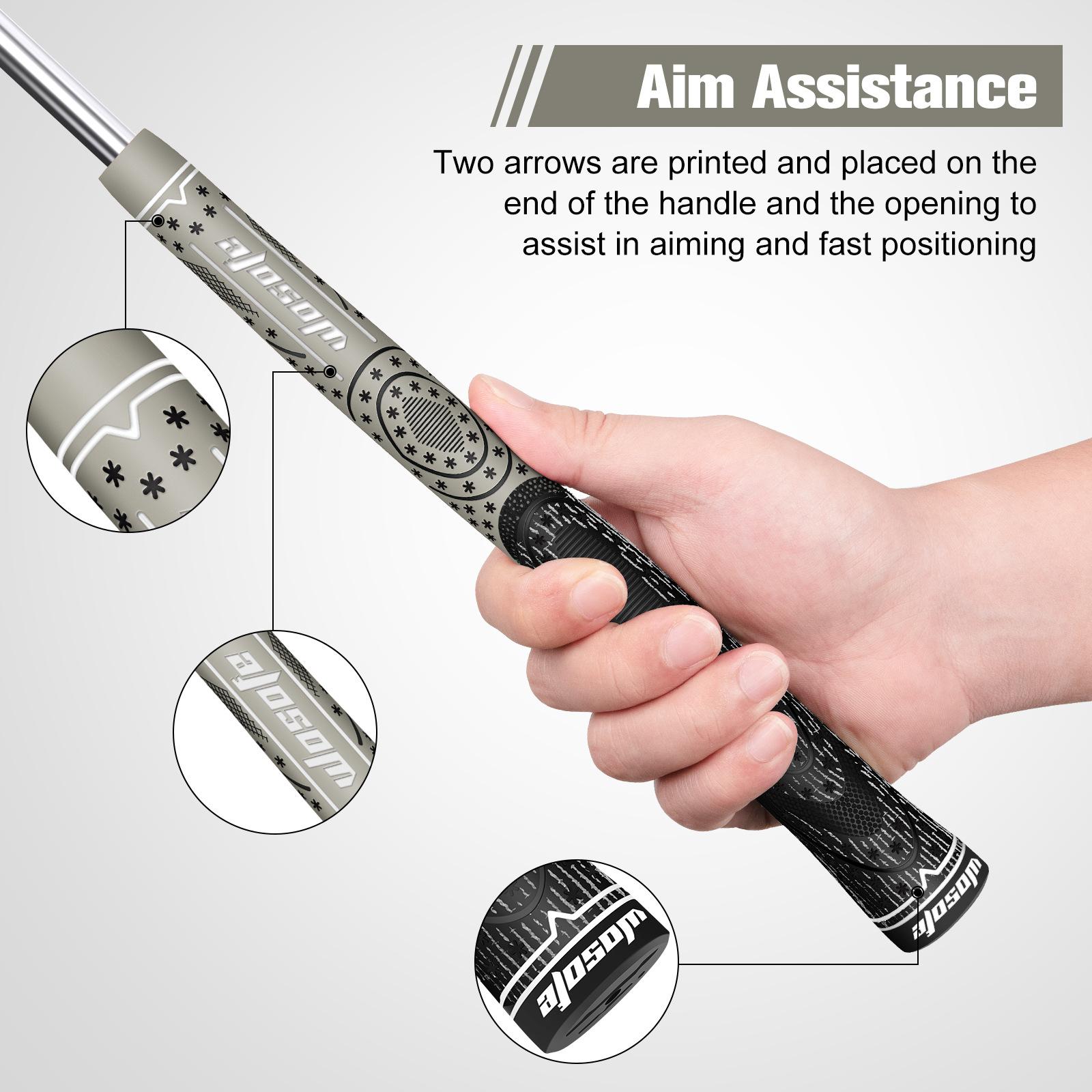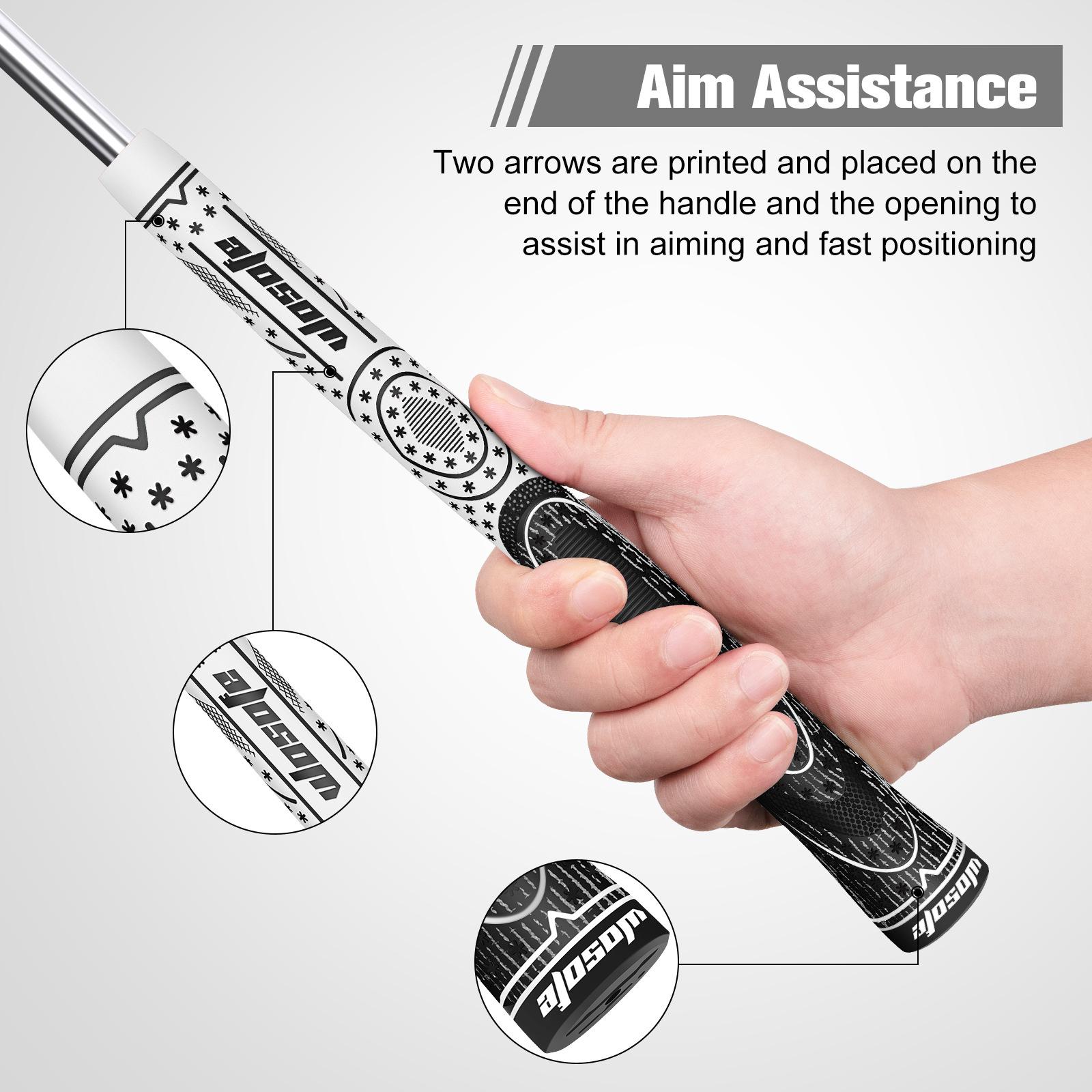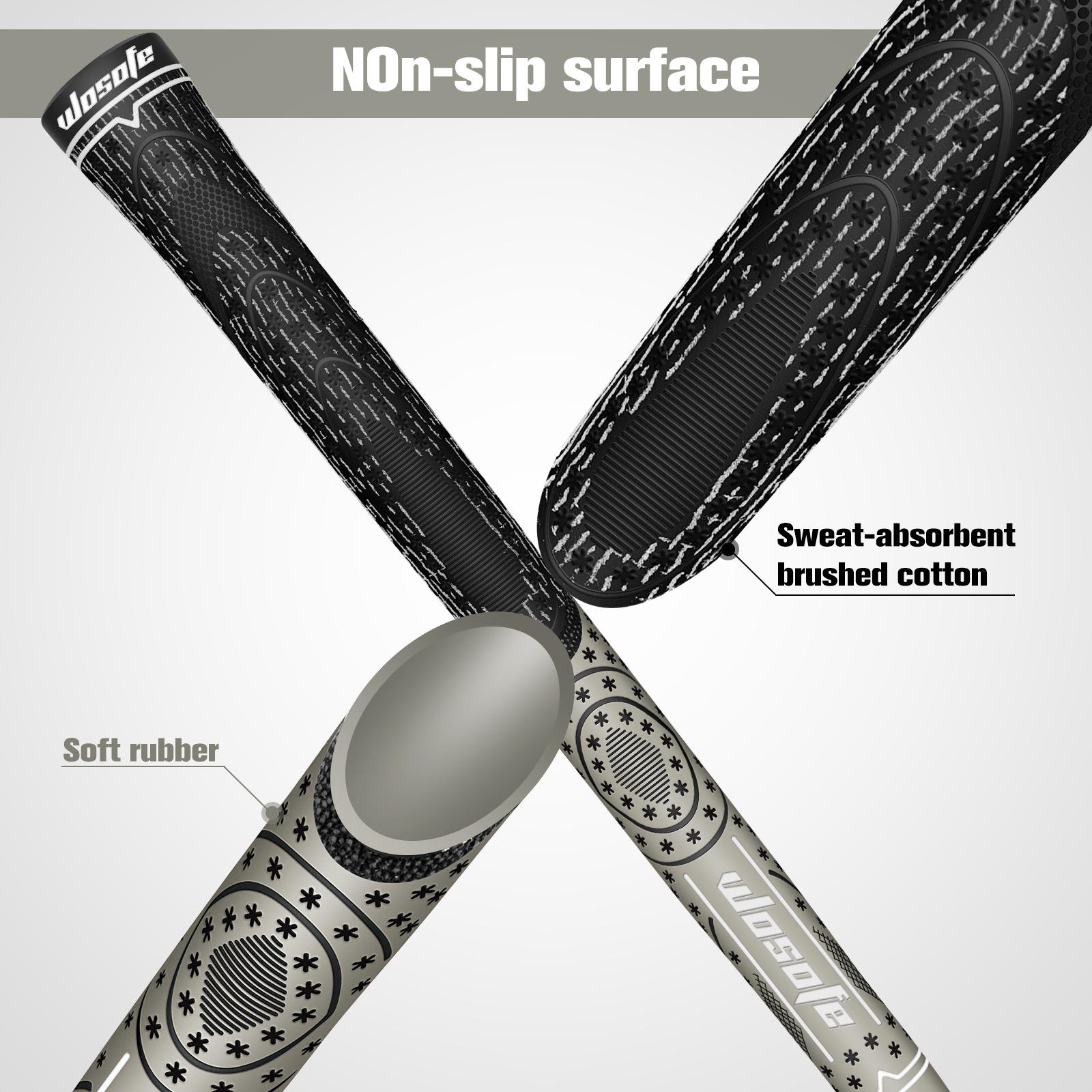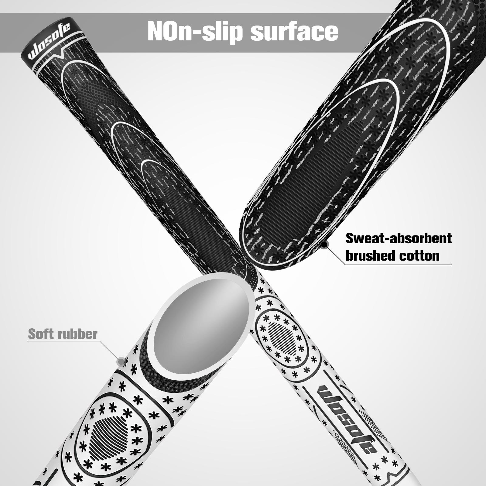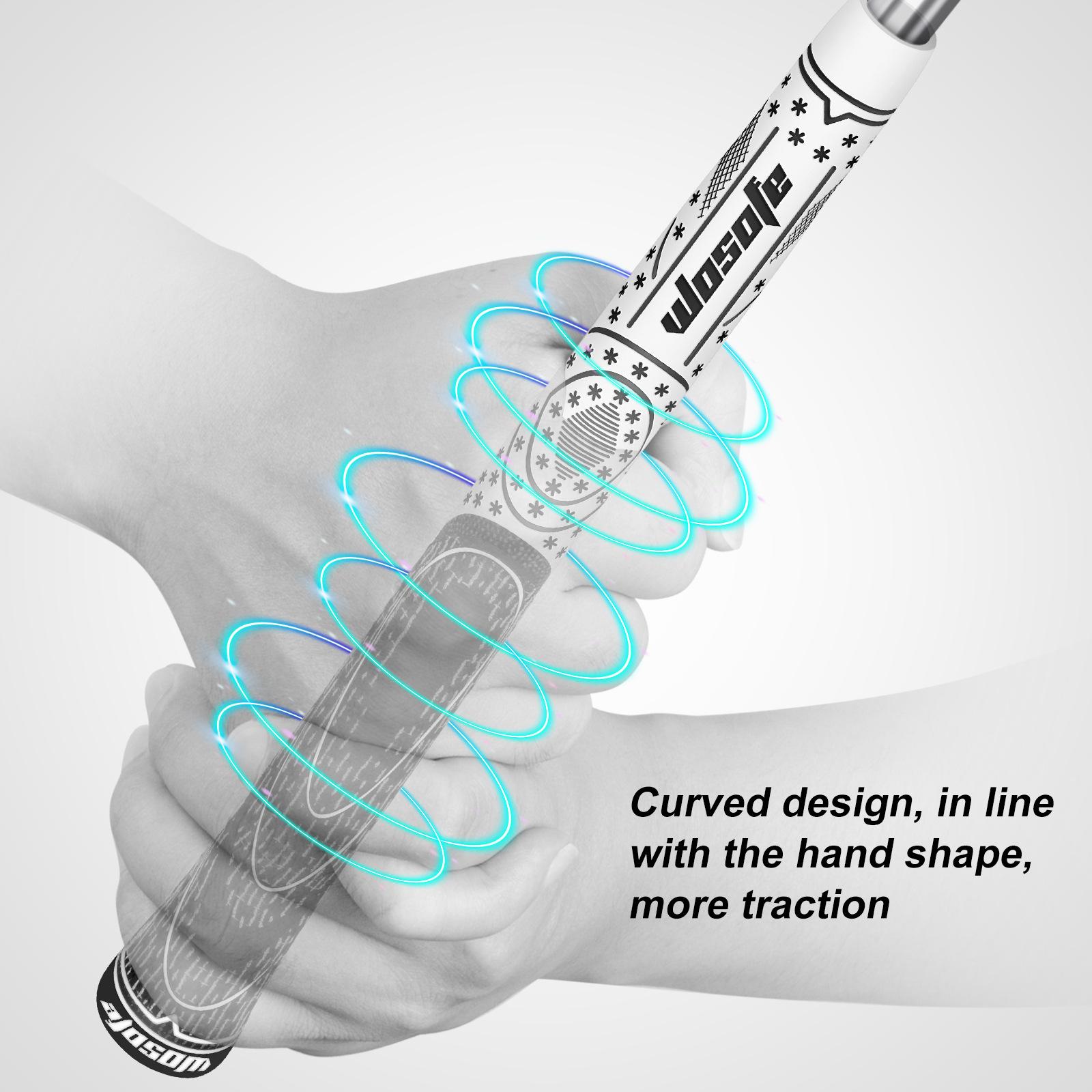 【Textura da superfície】: A textura macia dos punhos do taco de golfe ajuda a melhorar a sensação e o conforto, proporciona tração lateral e estabilidade de aderência, e a torção durante o impacto da bola é transformada em maior consistência e controle. Pode melhorar a capacidade de rebatidas e a confiança. Evite que o punho do taco de golfe escorregue em condições climáticas adversas.