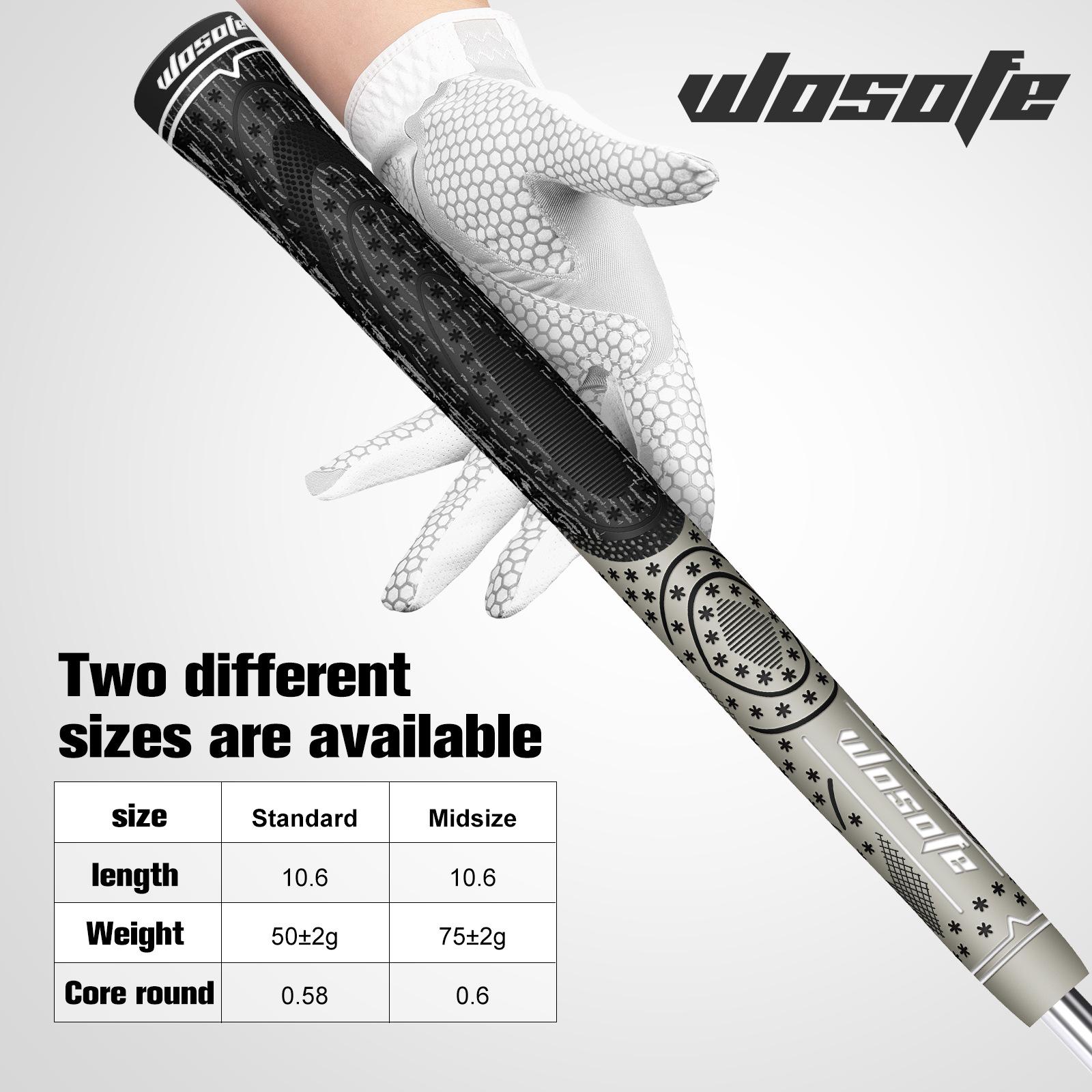 【Especificações do punho】: Este punho para taco de golfe tem dois modelos, tamanho padrão e tamanho médio. O comprimento dos punhos de golfe de tamanho médio é de cerca de 10,6 polegadas e o diâmetro interno é de 0,6 polegadas. O peso é de cerca de 75g. O comprimento do tamanho padrão dos punhos de golfe é de 10,6 polegadas, o diâmetro interno é de 0,58 polegadas e o peso é de cerca de 50g.