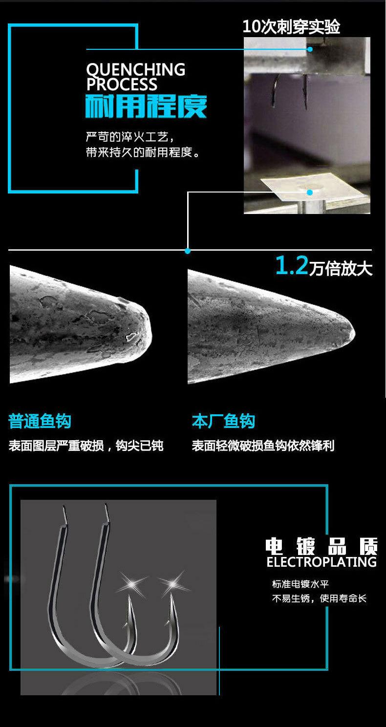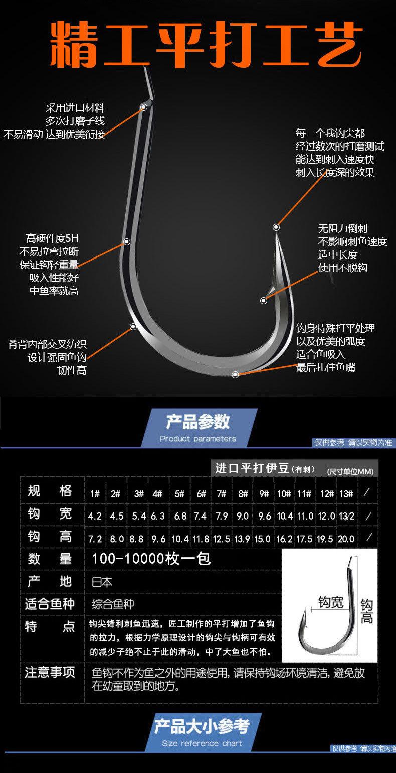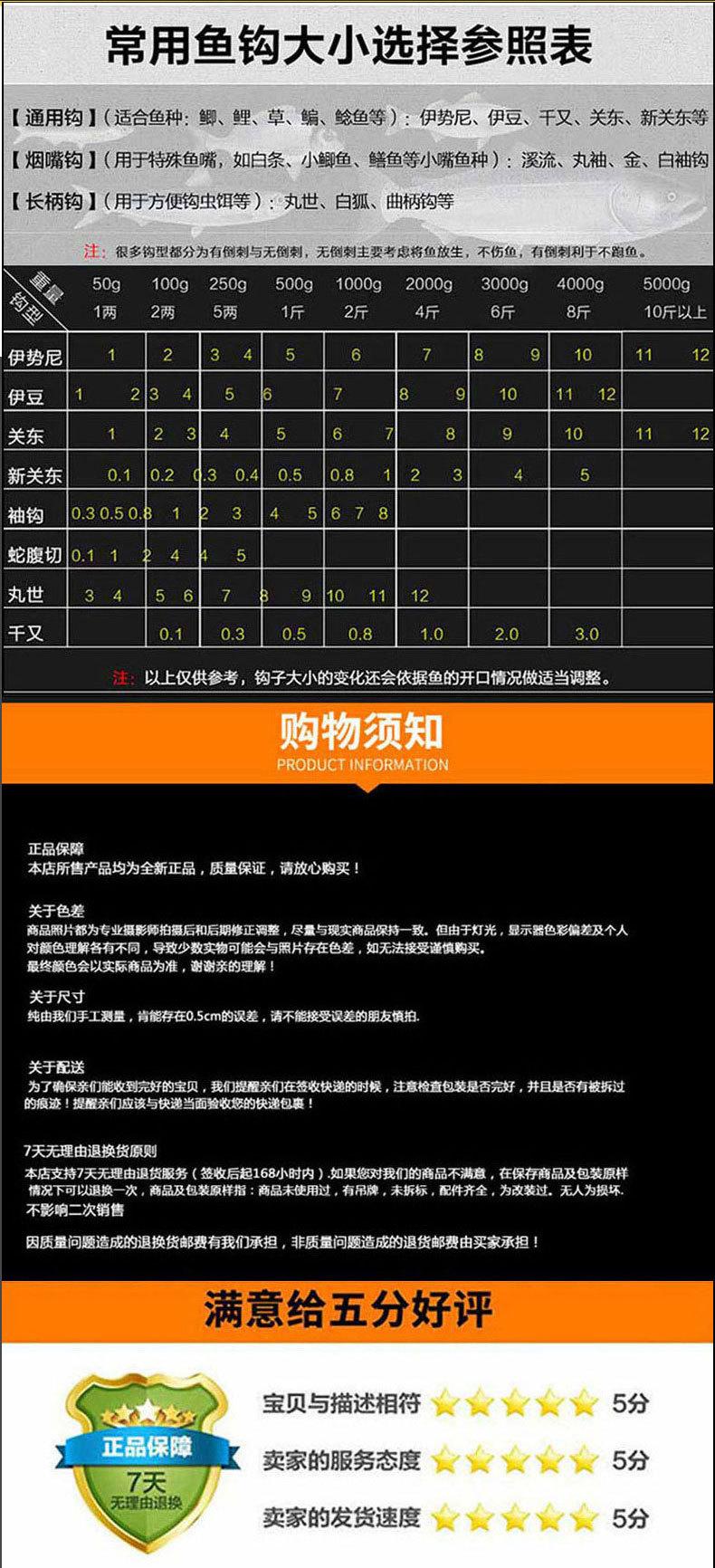 Os anzóis vêm em diferentes tamanhos, formatos e espessuras. A espessura do anzol está relacionada ao tamanho do anzol. Normalmente, o tamanho do anzol é proporcional à espessura do anzol, ou seja, quanto maior o tamanho do anzol, mais grosso será o anzol e maior será a resistência à tração do anzol. Pelo contrário, quanto menor for o tamanho do anzol, mais fino será o anzol e menor será a sua resistência à tração. Mas nem todos os ganchos pequenos têm ganchos finos e pouca resistência. Sabemos que a resistência à tração depende principalmente do material do gancho. Quanto melhor for a qualidade do fio de aço, maior será a resistência à tração. Além disso, o ângulo razoável e científico do anzol também pode aumentar a resistência à tração do anzol. Tomemos o gancho Ise-ni como exemplo. A espessura da ponta do gancho é diferente, o que faz com que o gancho grosso e o gancho fino tenham funções diferentes. Anzóis grossos são usados principalmente para capturar peixes maiores. Por exemplo, os peixes carnívoros ferozes, como a carpa preta, a carpa herbívora, a carpa, a carpa prateada e a carpa cabeçuda em água doce, ou o pargo preto e o pargo vermelho na água do mar, esses peixes tendem a ser agressivos e poderosos. Se forem pescados com anzóis finos, é fácil fazer com que os anzóis sejam esticados, quebrados e os peixes escapem. A carpa cruciana e o pargo são cautelosos na alimentação, são pequenos em tamanho, lutam pouco e têm bocas pequenas. Usar ganchos finos pode lidar com eles. As vantagens dos ganchos finos são boa ocultação, ganchos finos, forte capacidade de perfuração e alvos pequenos. Eles podem ser usados para capturar peixes astutos em lagos com resultados ideais. As vantagens dos anzóis grossos são a alta resistência à tração e não é fácil sair do anzol depois de pescar o peixe. A desvantagem é que a capacidade de perfuração é fraca, o que pode facilmente fazer com que os peixes fiquem cautelosos e afetar a taxa de mordidas dos peixes. Não é adequado para pescar peixes menores.