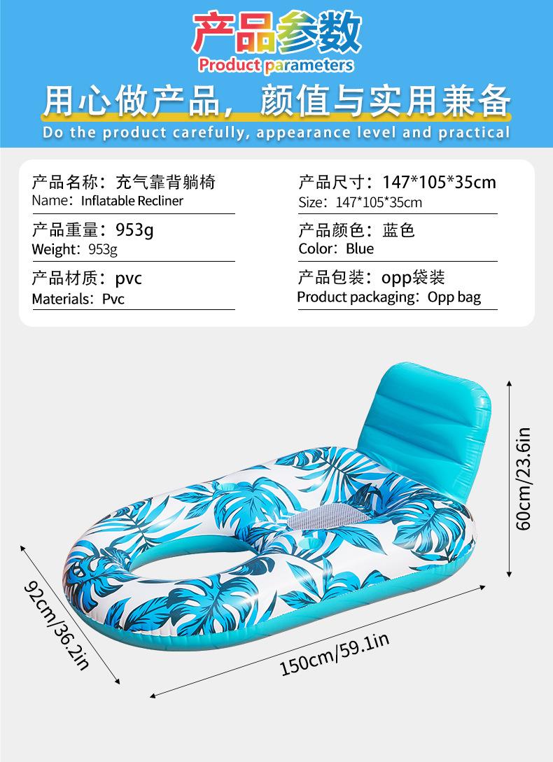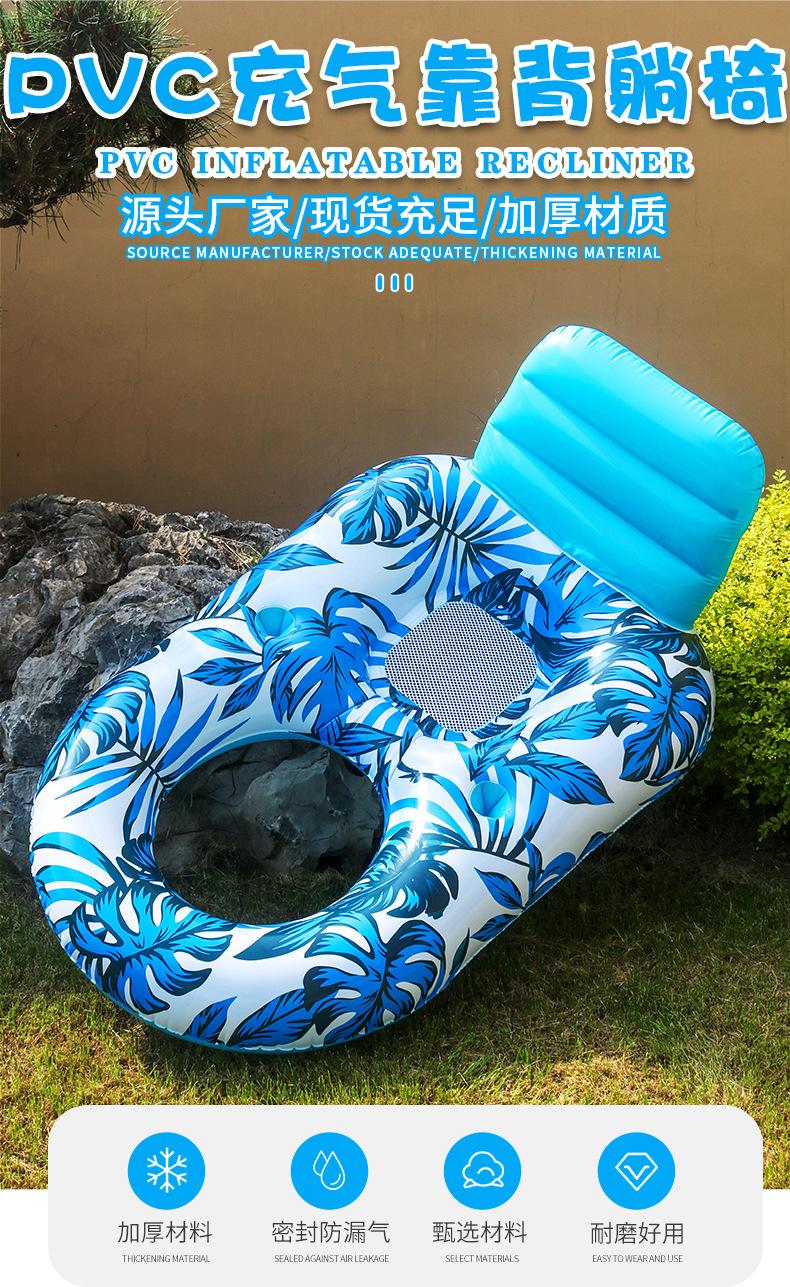 Nova cadeira inflável grande lounge PVC folha azul ao ar livre água flutuante linha verão piscina rede cama flutuante local
