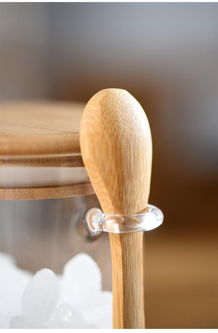 Vidro redondo colher de pau frasco de armazenamento de vidro borossilicato de vidro tempero jar multi-uso armazenamento selado frasco de chá de doces