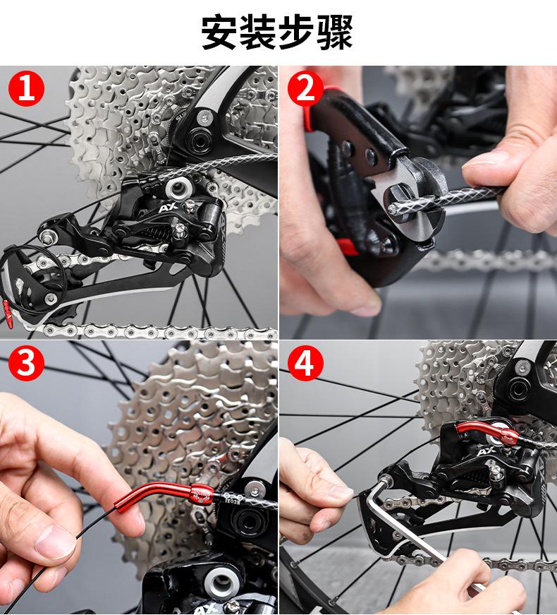 Características funcionales: Puede hacer que la transición del cable de cambio de velocidad al desviador trasero de la bicicleta sea más suave, el arco es más suave y se mejora la eficiencia del cambio de velocidad.También se puede utilizar para decorar bicicletas.