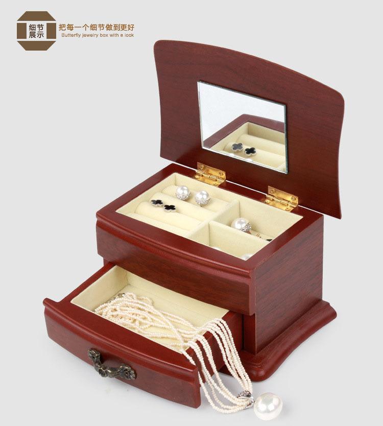 | Caixa de jóias de madeira maciça com bloqueio retro veludo antigo jóias caixa de armazenamento de madeira brinco caixa de presente caixa de brinco |