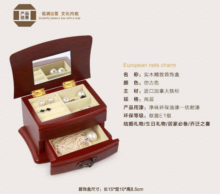 | Fornecimento de moda retro caixa de jóias de madeira estilo europeu flanela caixa de armazenamento de madeira estilo europeu caixa de jóias de três camadas |