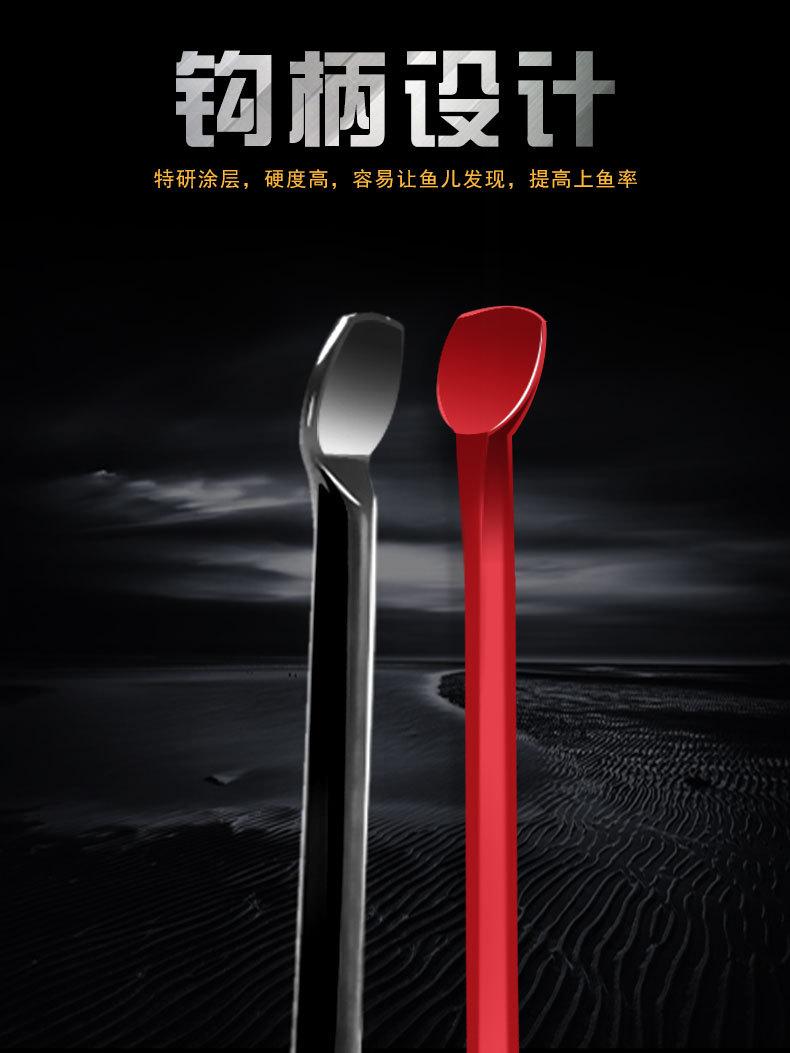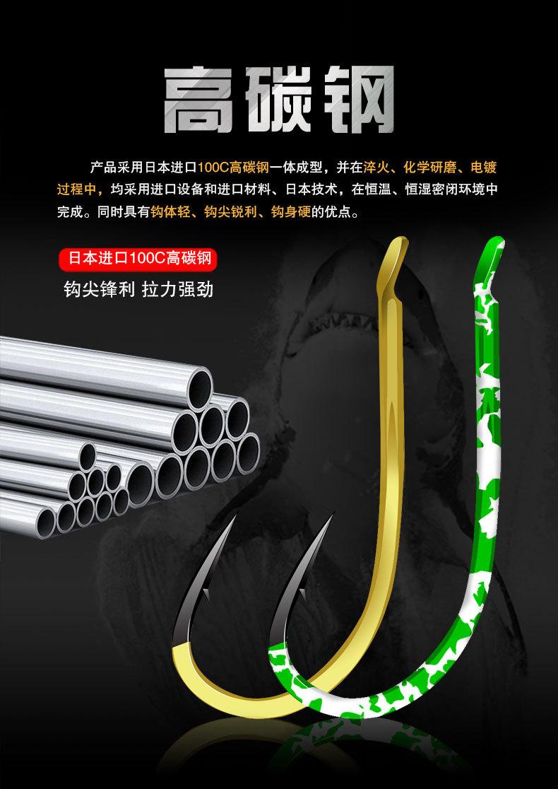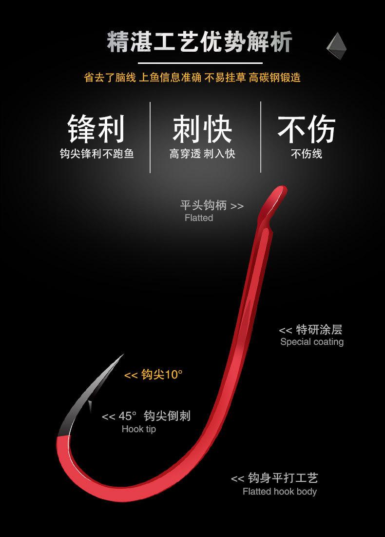Manga: Este tipo de anzol não possui farpas. A ponta do gancho é afiada, o cabo do gancho é longo, o gancho é fino e o corpo do gancho é leve. É adequado para pequenas espécies de peixes que se alimentam por sucção. É rápido de pegar e rápido de pegar. É usado principalmente para capturar carpa cruciana branca, isca branca pequena, etc.