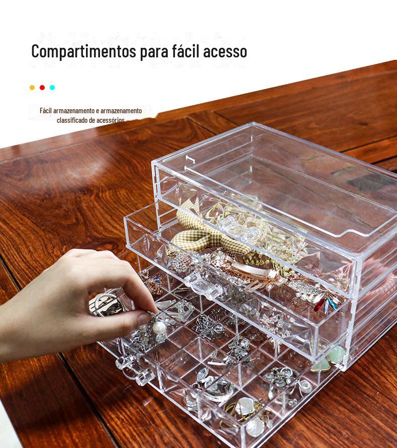 Combinações de mesa de maquiagem transparente pura gaveta brincos anéis de joias manicure diamantes enfeites de joias organizar caixa de armazenamento