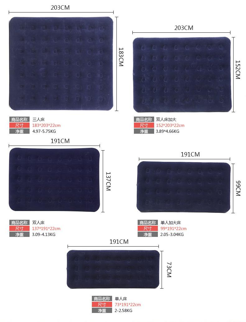 Tamanho inflável: 191cm * 73cm * 22cm, 191cm * 99cm * 22cm, 191cm * 137cm * 22cm, 203cm * 152cm * 22cm, 203cm * 183cm * 22cm
