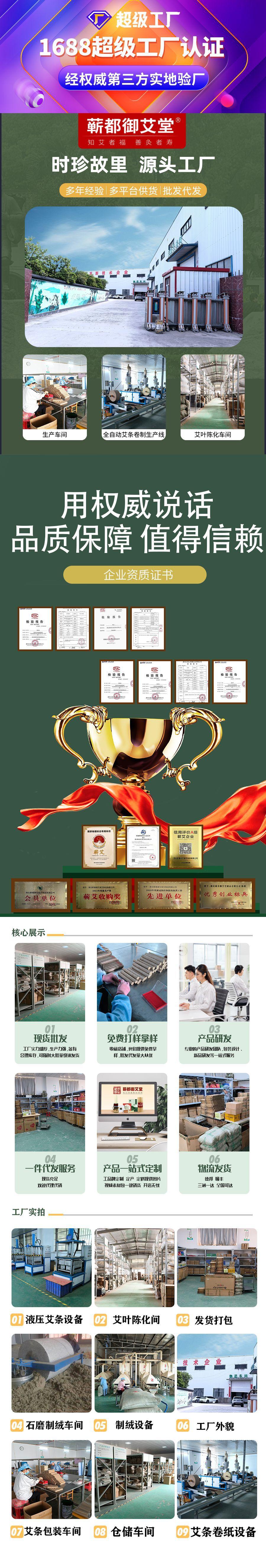 está envolvida principalmente em dispositivos de moxabustão, folhas de artemísia, pó de artemísia, lã de moxa, bastões de moxa, cones de moxa, adesivos de moxa, velas de moxa e óleos essenciais de artemísia. Foi aprovado e registrado pelo departamento industrial e comercial do estado. tem as qualificações para ser um agente de negócios para dispositivos de moxabustão, folhas de artemísia, pó de artemísia, lã de moxa, bastões de moxa, cones de moxa, adesivos de moxa, velas de moxa e óleos essenciais de artemísia. Hubei Qichun Yuaitang Mugwort Products Co., Ltd. tem produtos de alta qualidade, amplas perspectivas de mercado, tratamento generoso do agente e fortes vantagens do agente, tornando mais difícil para você iniciar um negócio e investir. dá as boas-vindas a todas as pessoas com ideais elevados que virão para visitas e inspeções no local