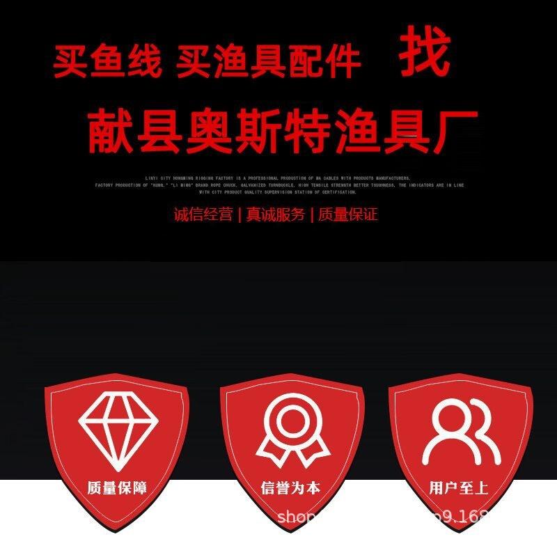 A fábrica de equipamentos de pesca Oster do condado de Xian está localizada na área de produção de equipamentos de pesca da cidade de Mo'nan, condado de Xian, cidade de Cangzhou, província de Hebei. A fábrica é uma empresa especializada na produção e processamento de linhas de pesca, anzóis, acessórios diversos para artes de pesca e outros produtos. Possui um sistema de gestão de qualidade completo e científico. A empresa segue os padrões da indústria de integridade, resistência e qualidade do produto e controla rigorosamente os links de produção. Amigos de todas as esferas da vida são bem-vindos para visitar, orientar e negociar negócios.