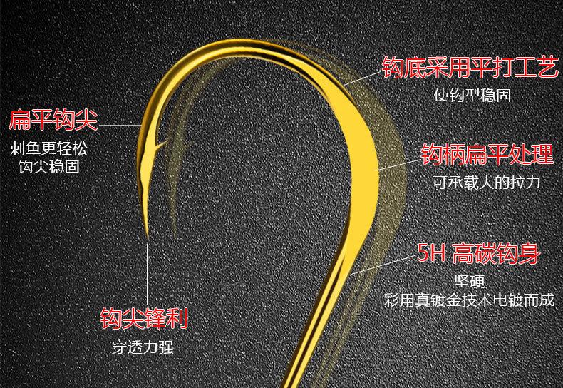Manga: Este tipo de anzol não possui farpas. A ponta do gancho é afiada, o cabo do gancho é longo, o gancho é fino e o corpo do gancho é leve. É adequado para pequenas espécies de peixes que se alimentam por sucção. É rápido de pegar e rápido de pegar. É usado principalmente para capturar carpa cruciana branca, isca branca pequena, etc.