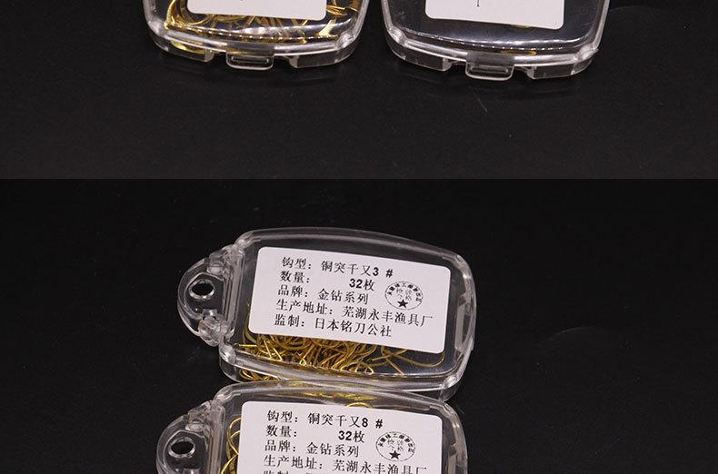 O gancho de três garras é apontado para cima e dividido igualmente no cabo da âncora em 120 graus. Há um anel na extremidade da alça para amarrar a linha. É frequentemente visto na pesca com pólvora nas regiões de Guangdong, Guangxi e Fujian do meu país. O princípio deste método de pesca é semelhante ao do anzol de âncora de duas pernas, sendo que ambos utilizam uma forma relutante de fisgar e capturar peixes. Além disso, este gancho de âncora também pode ser transformado em um grupo de pesca de placa de cobre, que é usado para capturar peixes ferozes, como peixes brancos, peixes do clã de peixes e peixes com sentido de peixe. Na hora de pescar, opte por lançar em corredeiras e águas com ventos e ondas fortes, e use o molinete para puxar e o brilho da placa de cobre para provocar os peixes brancos ou peixes que estão em busca de alimento. Quando o peixe morde o anzol, o pescador sentirá uma clara sensação de tensão na vara, e a vara pode ser levantada com grande força para pegá-la.