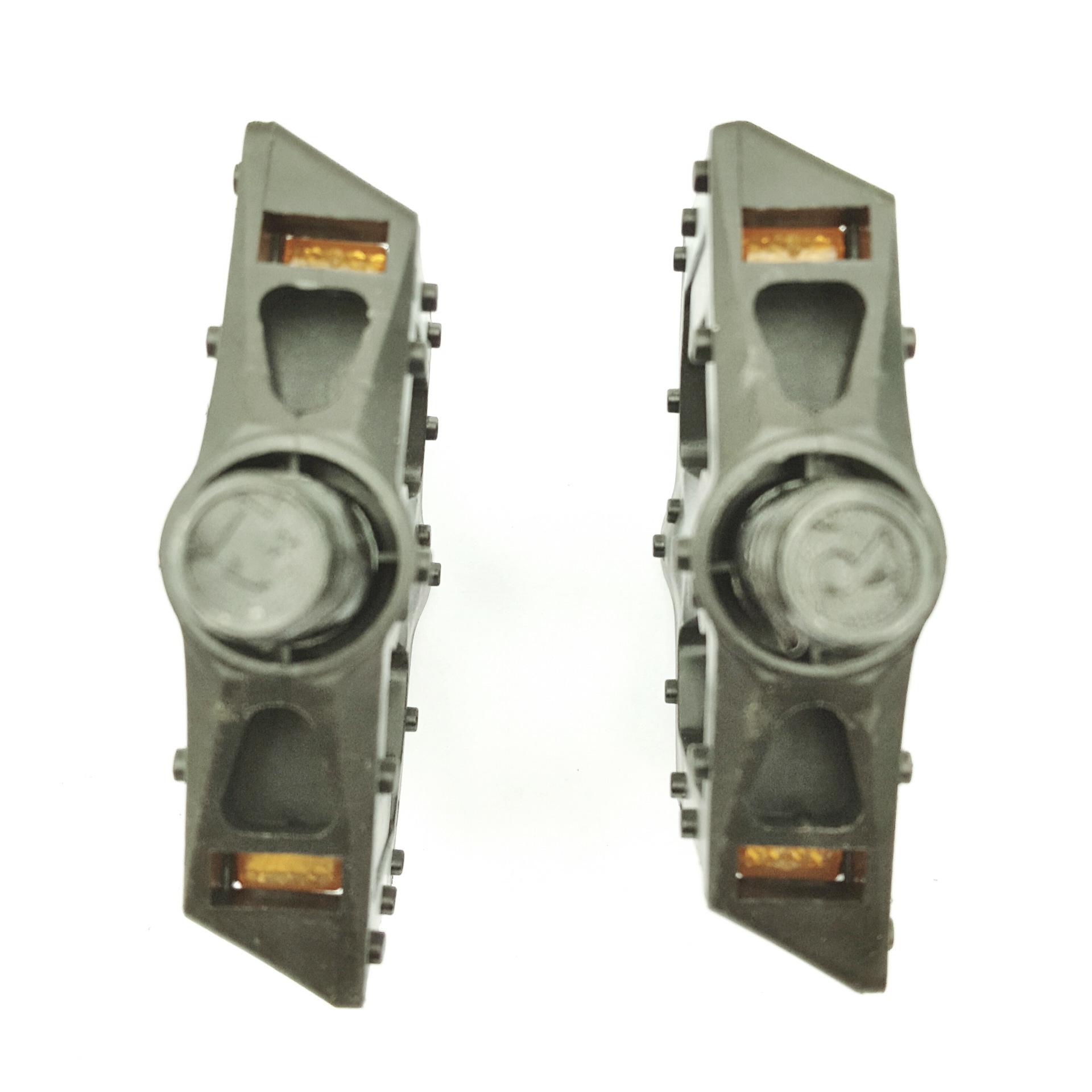 Os pedais são feitos de plástico rígido de engenharia, o núcleo do eixo é feito de aço carbono e a frente dos pedais possui um design antiderrapante para aumentar o atrito. Ele pode ser facilmente dobrado com uma mão para facilitar o armazenamento e pode ser usado em bicicletas dobráveis, mountain bikes e bicicletas de estrada.