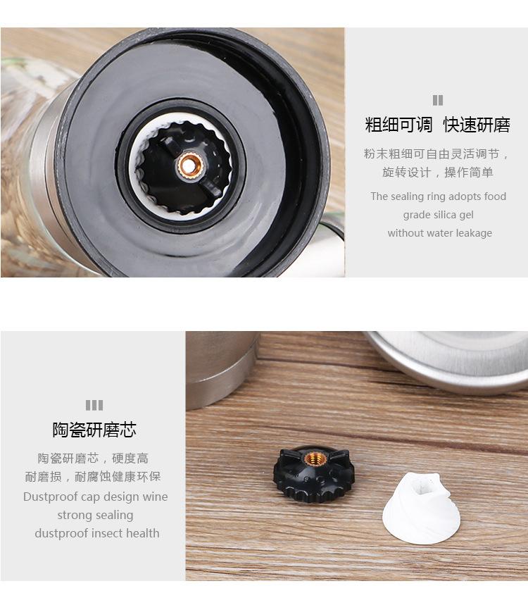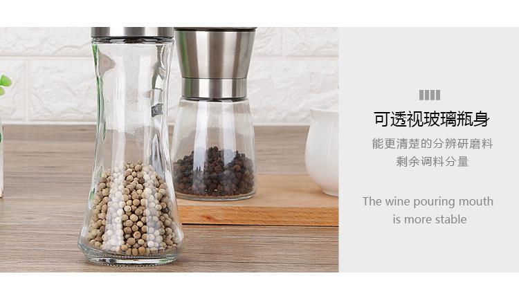 Hecho de vidrio blanco alto seleccionado sin plomo, acero inoxidable 304 de grado alimenticio y núcleo de molienda de cerámica 95 de alta resistencia, es un pequeño ayudante muy práctico en la cocina. Es fácil de usar, de apariencia hermosa y un artículo para el hogar con una apariencia hermosa y excelente artesanía, mostrando la conveniencia de la vida.