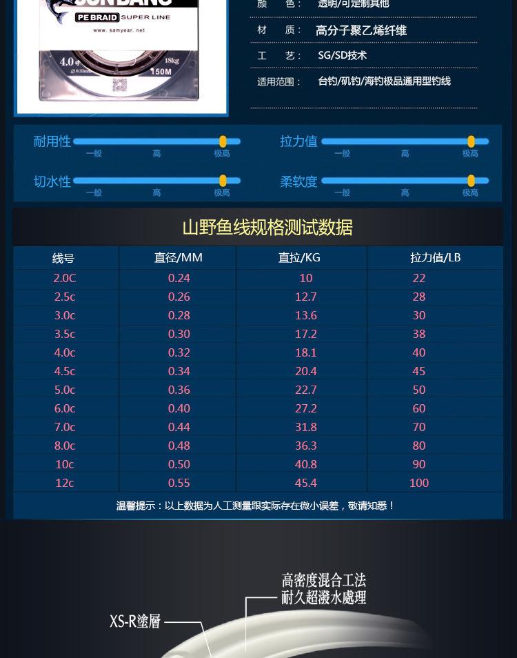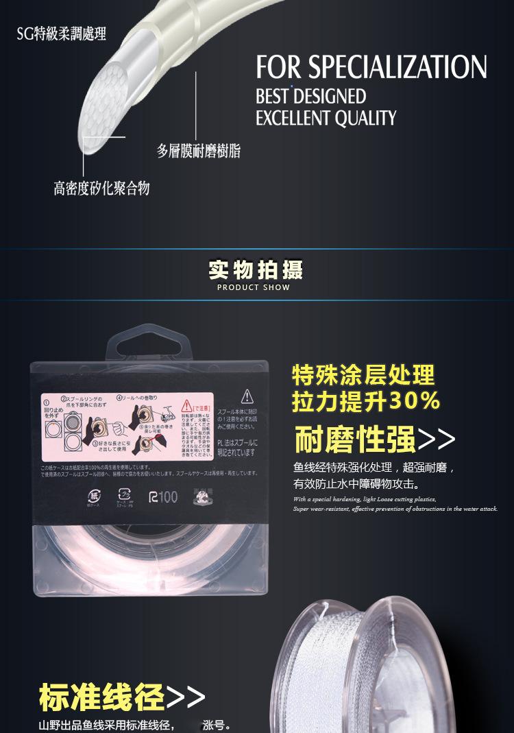 Dongyang Shanye Fishing Tackle Co., Ltd., anteriormente Dongyang Lima Fishing Tackle Factory, foi fundada em 2006. É uma empresa especializada na produção de linhas de pesca trançadas Dalima importadas, linhas anti-mordida de PE, linhas de pesca de monofilamento de náilon, desgaste- linhas de pesca marítima resistentes, molinetes, molinetes e outros suprimentos de pesca. A empresa é forte, todas as matérias-primas são importadas e os equipamentos são avançados. As linhas trançadas fornecem linhas trançadas PE superfortes de 3 tranças, 4 tranças, 6 tranças, 8 tranças e 12 tranças em várias especificações. A linha de peixes Dalima produzida por nossa empresa possui forte força de tração e é fácil de usar. É a primeira escolha para fundição de longa distância, pesca em rocha, pesca em barco, pesca em jangada, pesca com isca e entusiastas da pesca marítima.