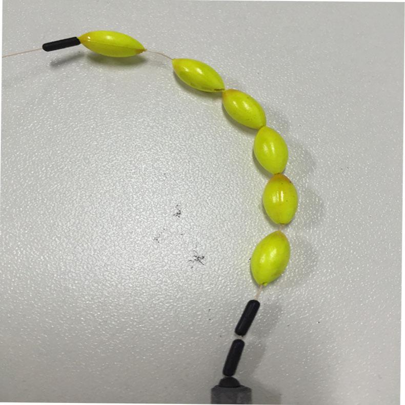 O conjunto de linha finalizado inclui: 1. Linha principal 2. Sublinha 3. Bóia de sete estrelas 4. Chumbo 5. Assento de bóia 6. Anzol simples 7. Feijão espacial