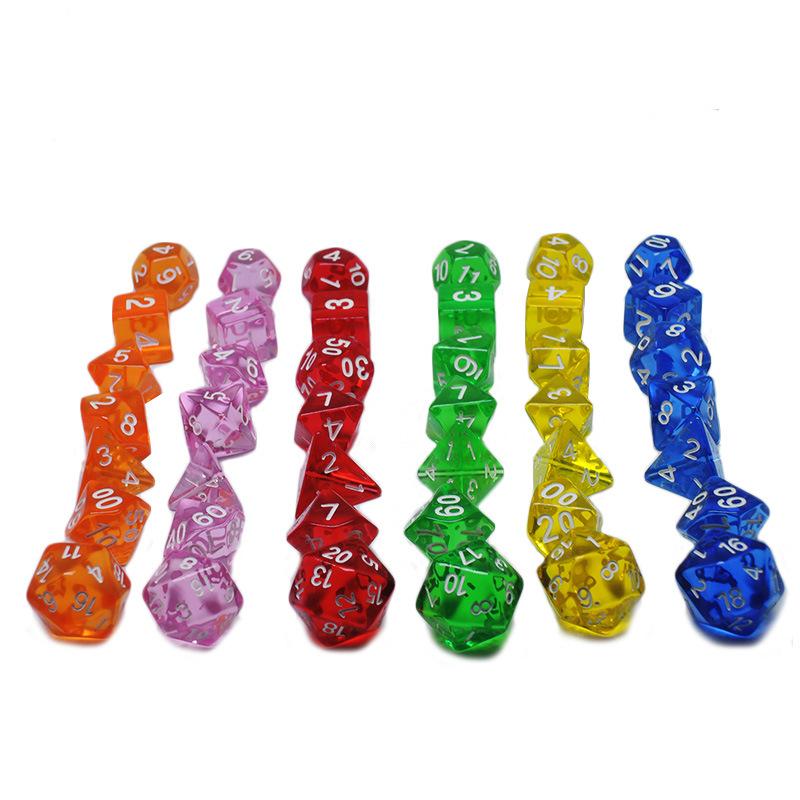 Este conjunto de dados multifacetados inclui sete especificações de dados digitais multifacetados: 4 lados/6 lados/8 lados/10 lados/12 lados/20 lados. Eles são todos feitos de novos materiais acrílicos, com gravuras claras em cada lado, textura de imitação de mármore e aparência de alta qualidade e bonita.É amplamente utilizado por vários acessórios de jogos no país e no exterior.