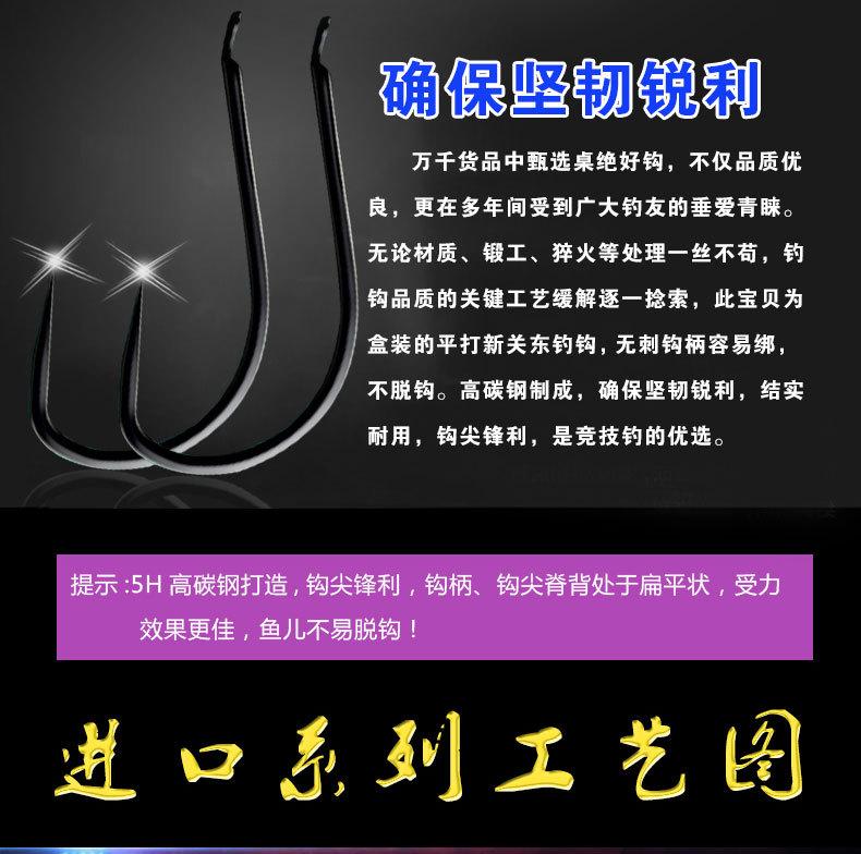 Los nuevos anzuelos a granel de punta plana Guandong están hechos de acero importado, y cada proceso se completa por división del trabajo. La calidad es superior a la rigidez del acero ordinario en el mercado y del buen acero nacional, rompiendo así la situación en el mercado de que los anzuelos pequeños no son fáciles de clavar planos.