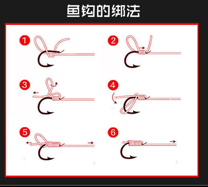 Al atar el anzuelo, tenga en cuenta lo siguiente: independientemente del tipo de sedal que utilice, debe atar los extremos superior e inferior del sedal al interior del anzuelo para asegurar que la fuerza de tracción sea la correcta al capturar el pez y evitar que se caiga. Si utiliza varias hebras de hilo de seda como línea de cerebro o un anzuelo de bomba autoatado, no las enrolle más de cuatro veces al atar el anzuelo. Si lo enrolla demasiado, será difícil atar el anzuelo con fuerza y el hilo de seda se soltará fácilmente del mango. También puede atar un sedal de doble hebilla de "8", que puede tensar y fortalecer el anzuelo.
