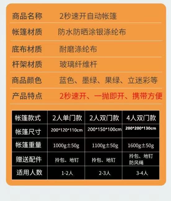 [Especificações do produto] 1-2 pessoas: 200 cm * 120 cm * 110 cm (porta única sem clarabóia) Peso: 0,9 kg