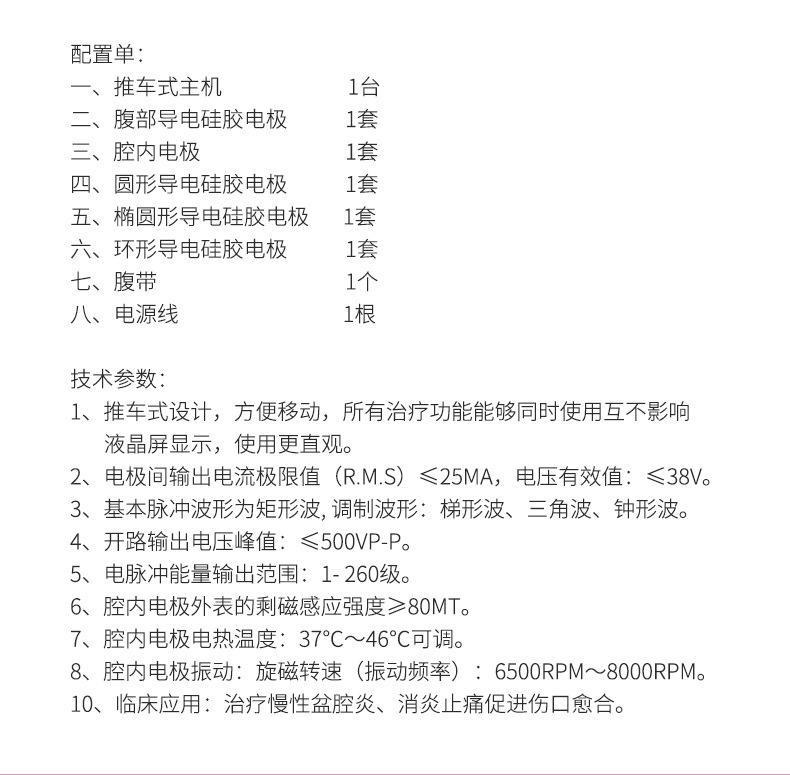 Adote tela LCD, menu de operação chinês completo, operação intuitiva e simples, adequado para tratamento de reabilitação de doenças obstétricas e ginecológicas