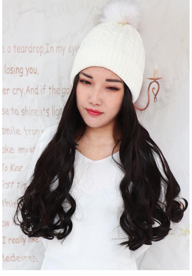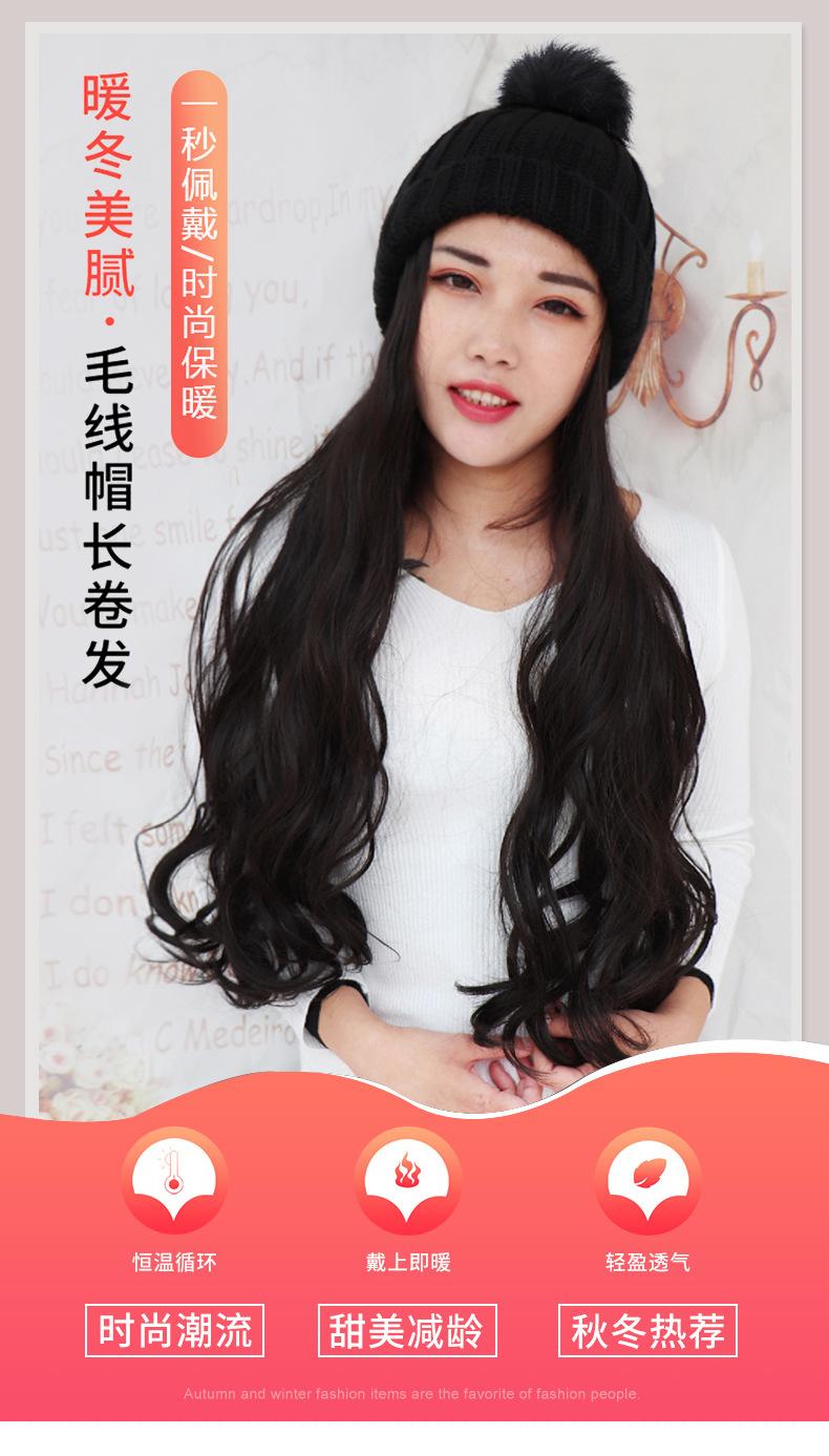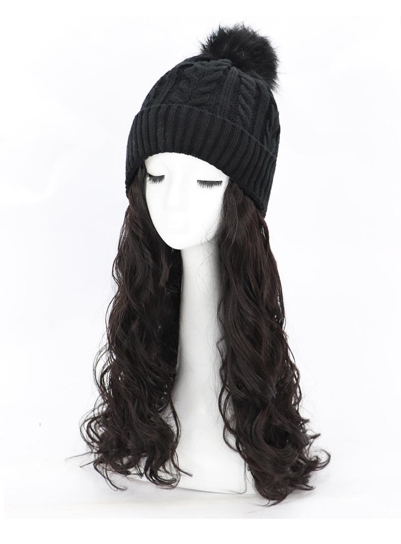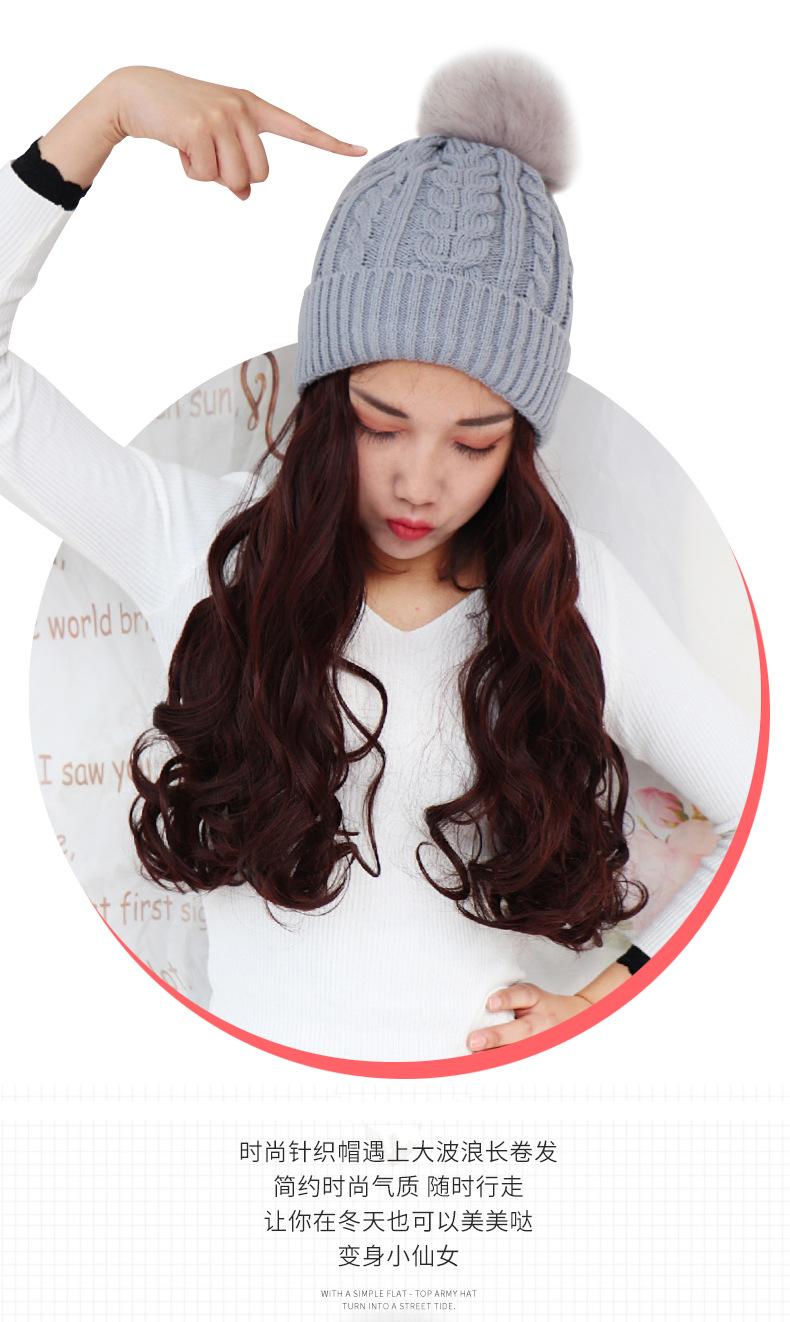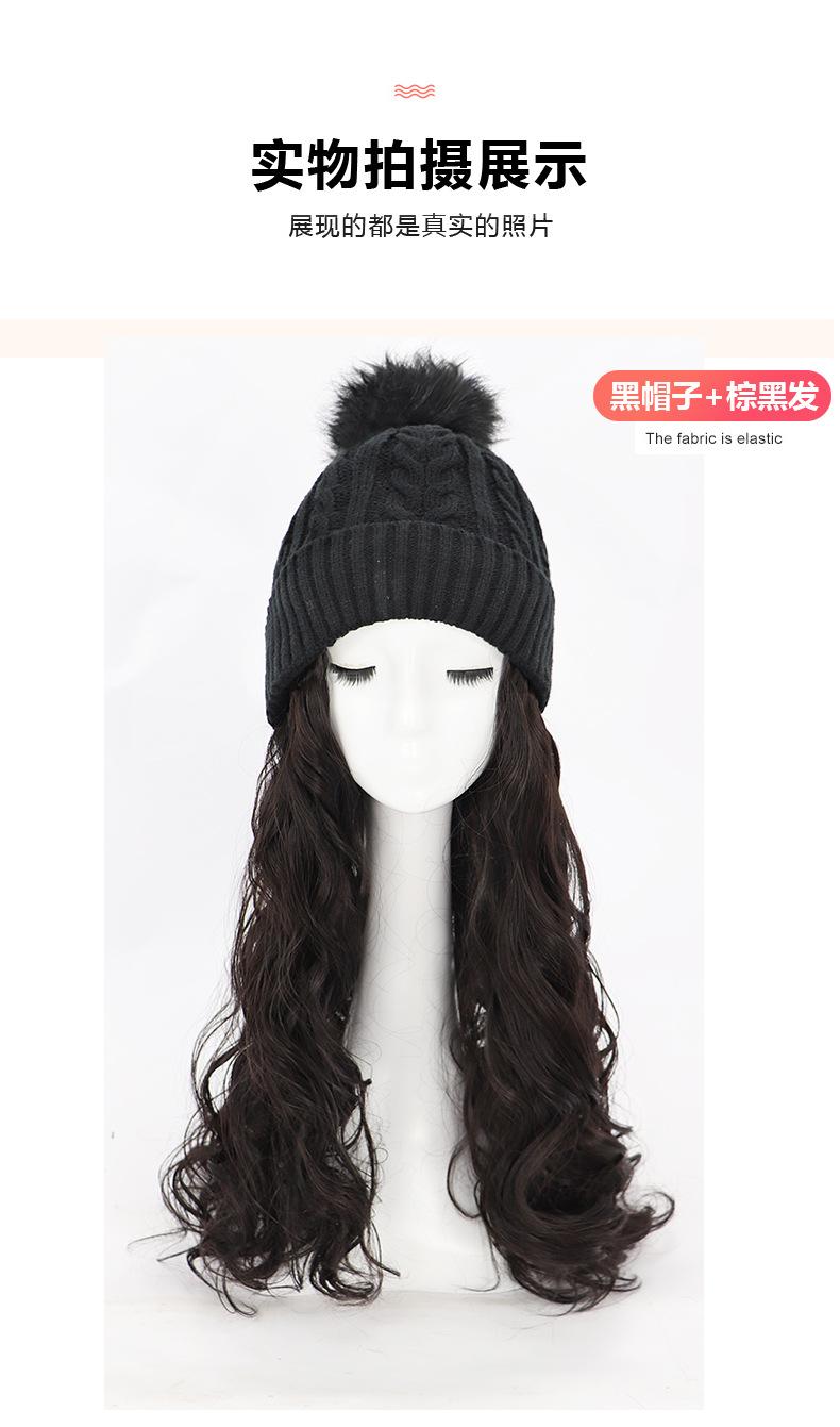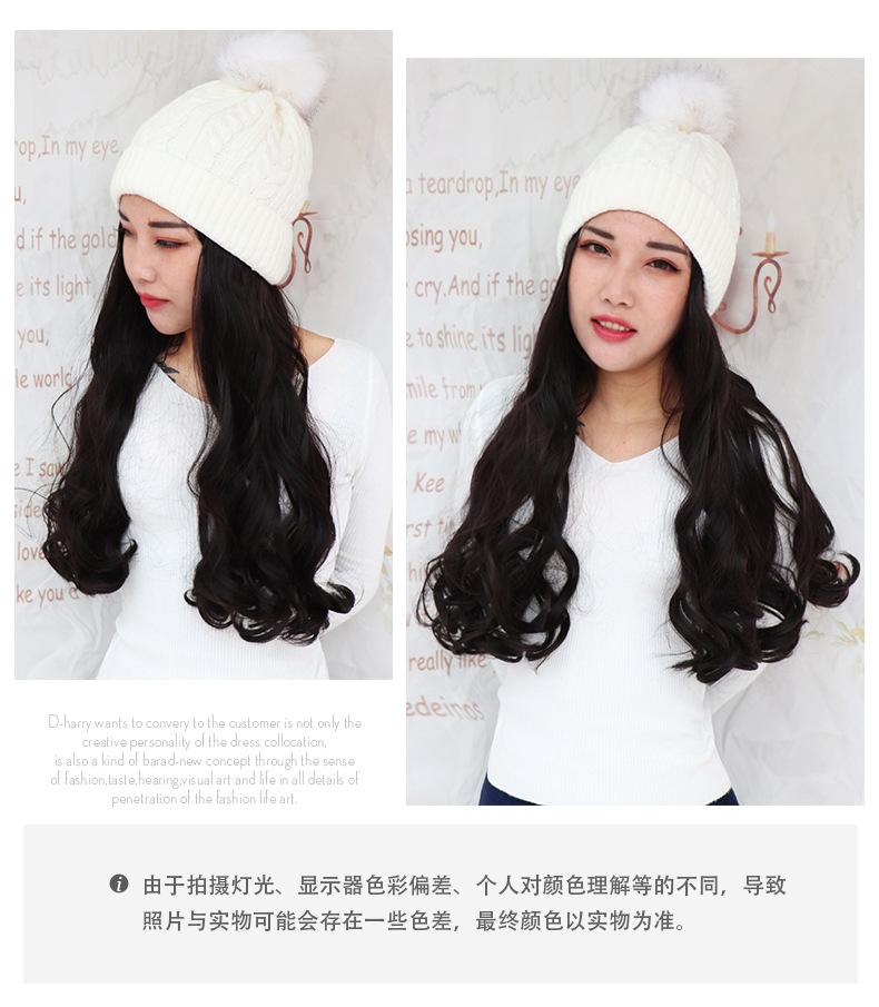 Nome do produto: Gorro de pelúcia de malha de outono e inverno com cabelo longo e encaracolado