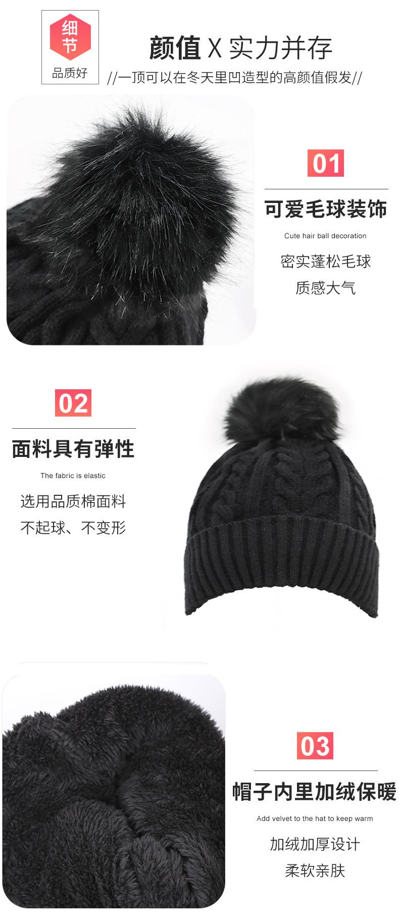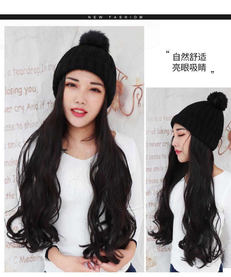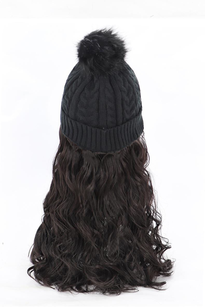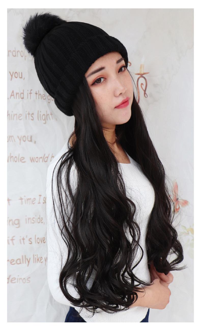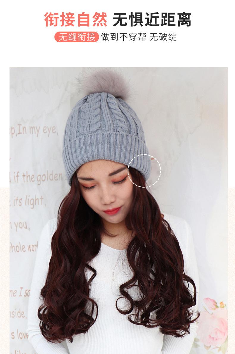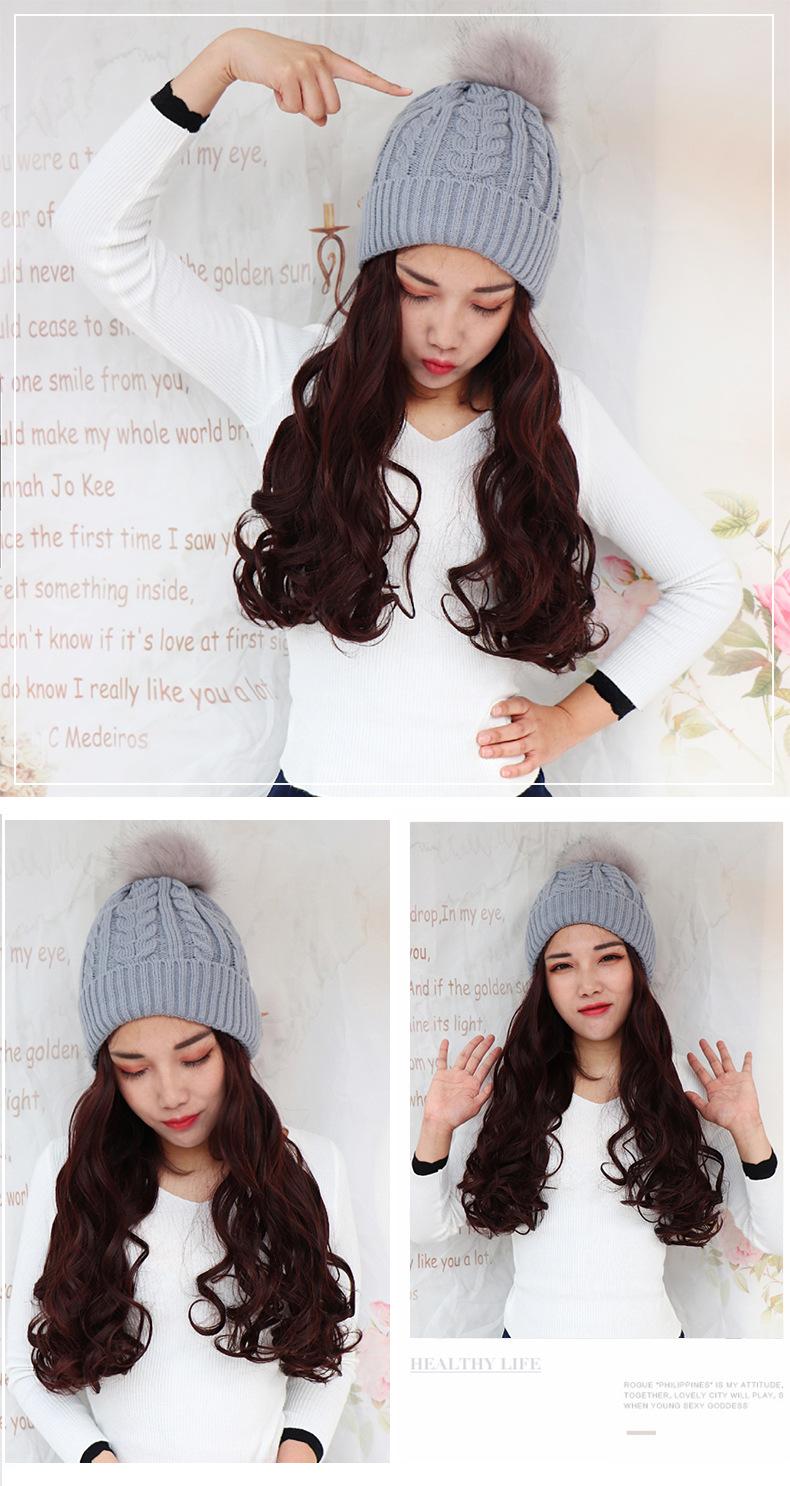 Nome do produto: Gorro de pelúcia de malha de outono e inverno com cabelo longo e encaracolado