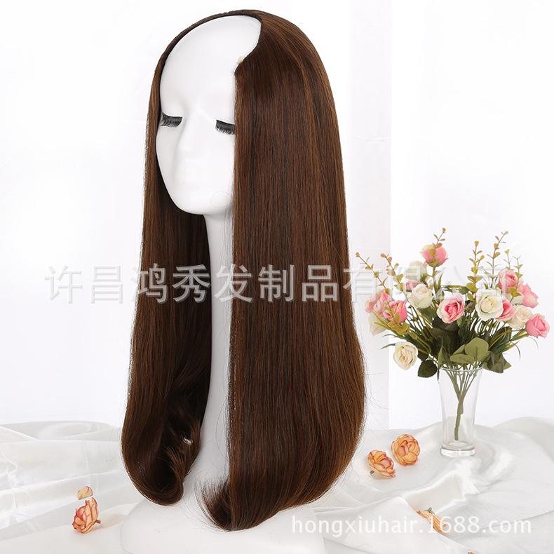 Nome do Produto:Peruca para mulheres, cabelo longo e liso, peruca em forma de U, meia cabeça, com cauda interna e peruca de fibra sintética
