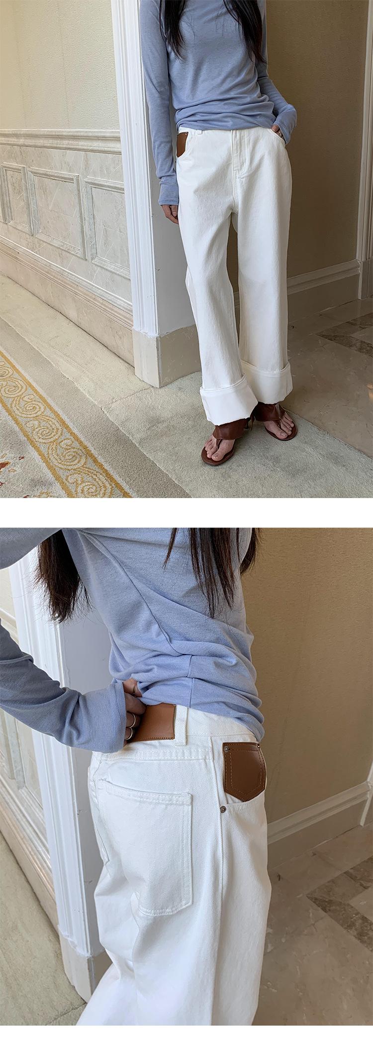 Jeans de Mujer Versátiles y Adelgazantes de Nueve Puntos Empalmados Rectos de Cintura Alta de Moda Primavera 2024 de Yuyi 30459