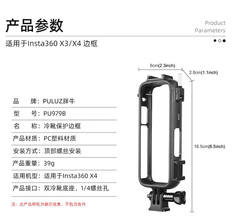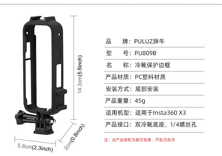 Para Insta360 X4 PULUZ Cold Shoe Protective Frame PC Adaptador de plástico e parafusos (cor: preto)